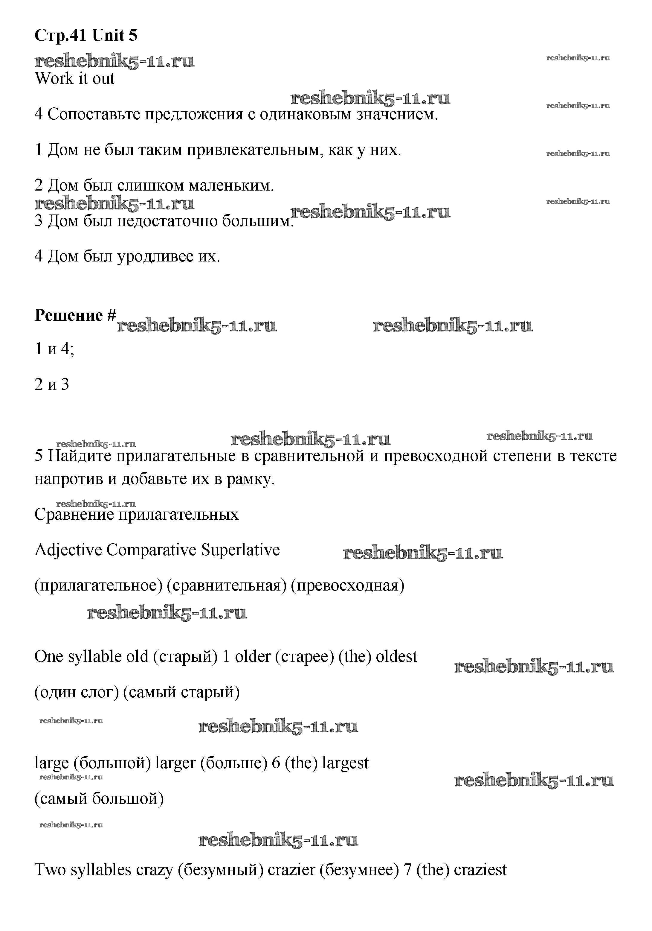 Готовая домашняя работа с ответами по Английскому языку за 8 класс Вербицкая, Маккинли, Хастингс, Миндрул Учебник Forward Вентана-граф 2016 ФГОС - Unit 5 No place like home стр.41
