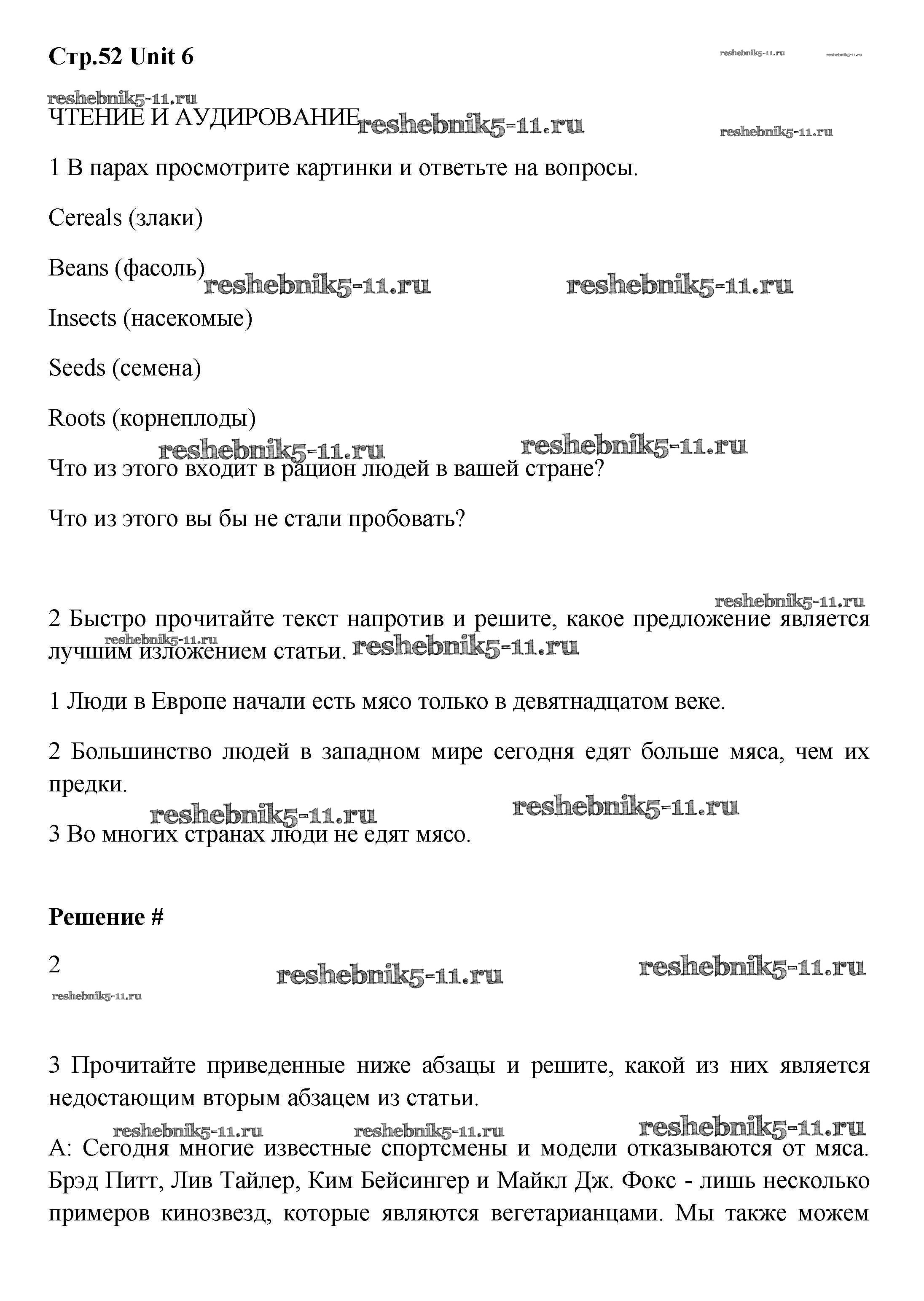 Готовая домашняя работа с ответами по Английскому языку за 8 класс Вербицкая, Маккинли, Хастингс, Миндрул Учебник Forward Вентана-граф 2016 ФГОС - Unit 6 Eat up! стр.52