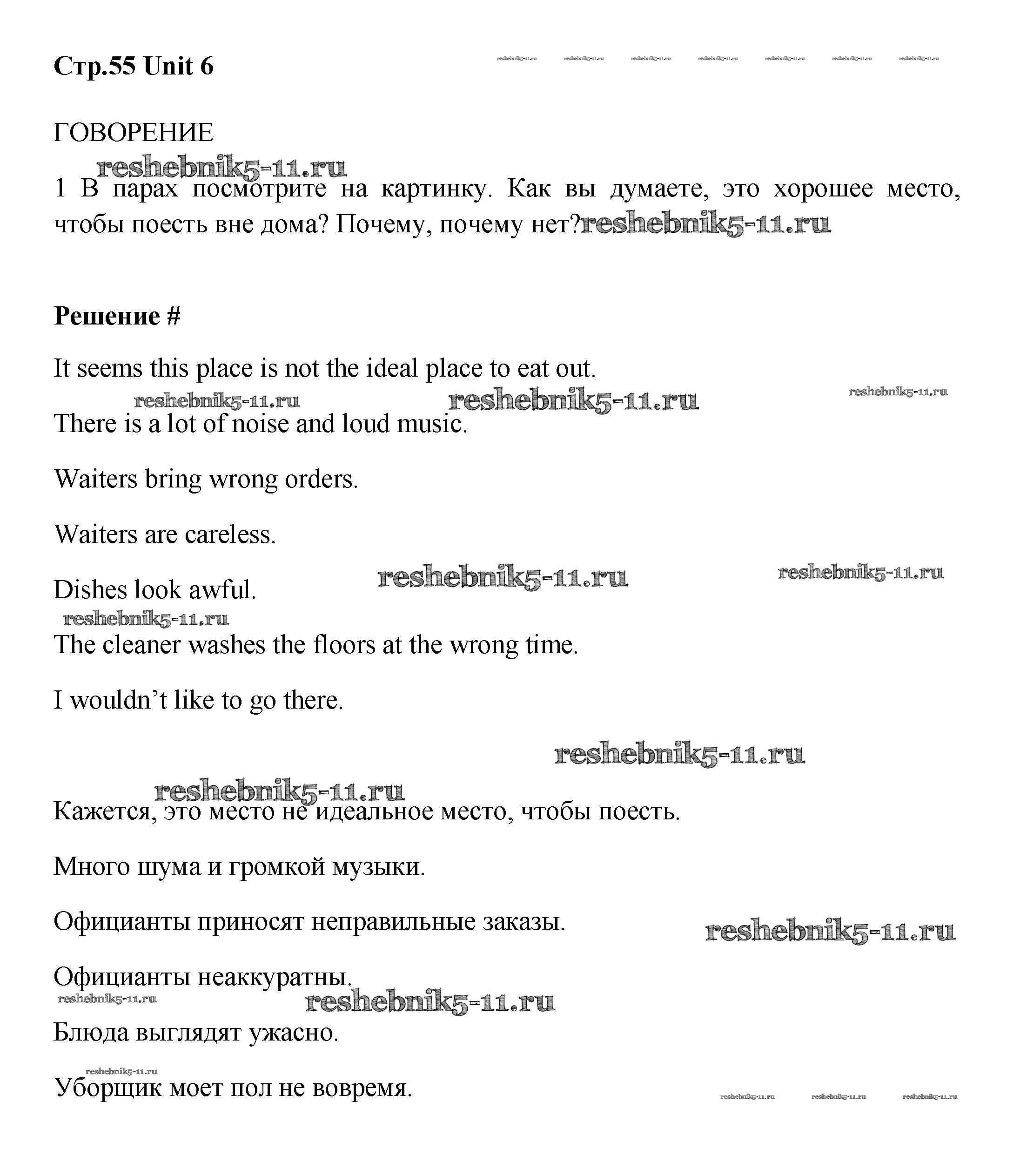 Готовая домашняя работа с ответами по Английскому языку за 8 класс Вербицкая, Маккинли, Хастингс, Миндрул Учебник Forward Вентана-граф 2016 ФГОС - Unit 6 Eat up! стр.55