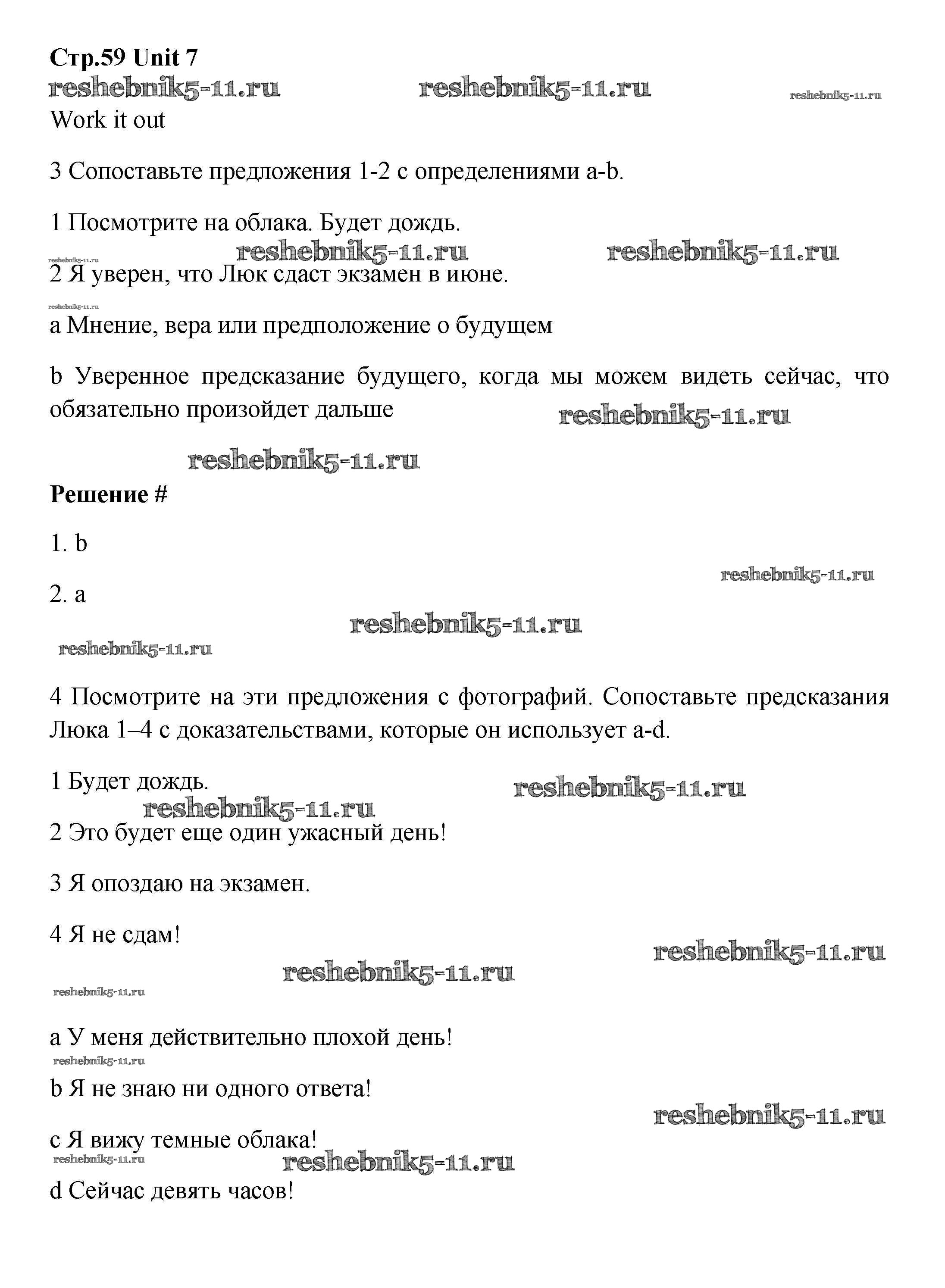 Готовая домашняя работа с ответами по Английскому языку за 8 класс Вербицкая, Маккинли, Хастингс, Миндрул Учебник Forward Вентана-граф 2016 ФГОС - Unit 7 Look to the future стр.59
