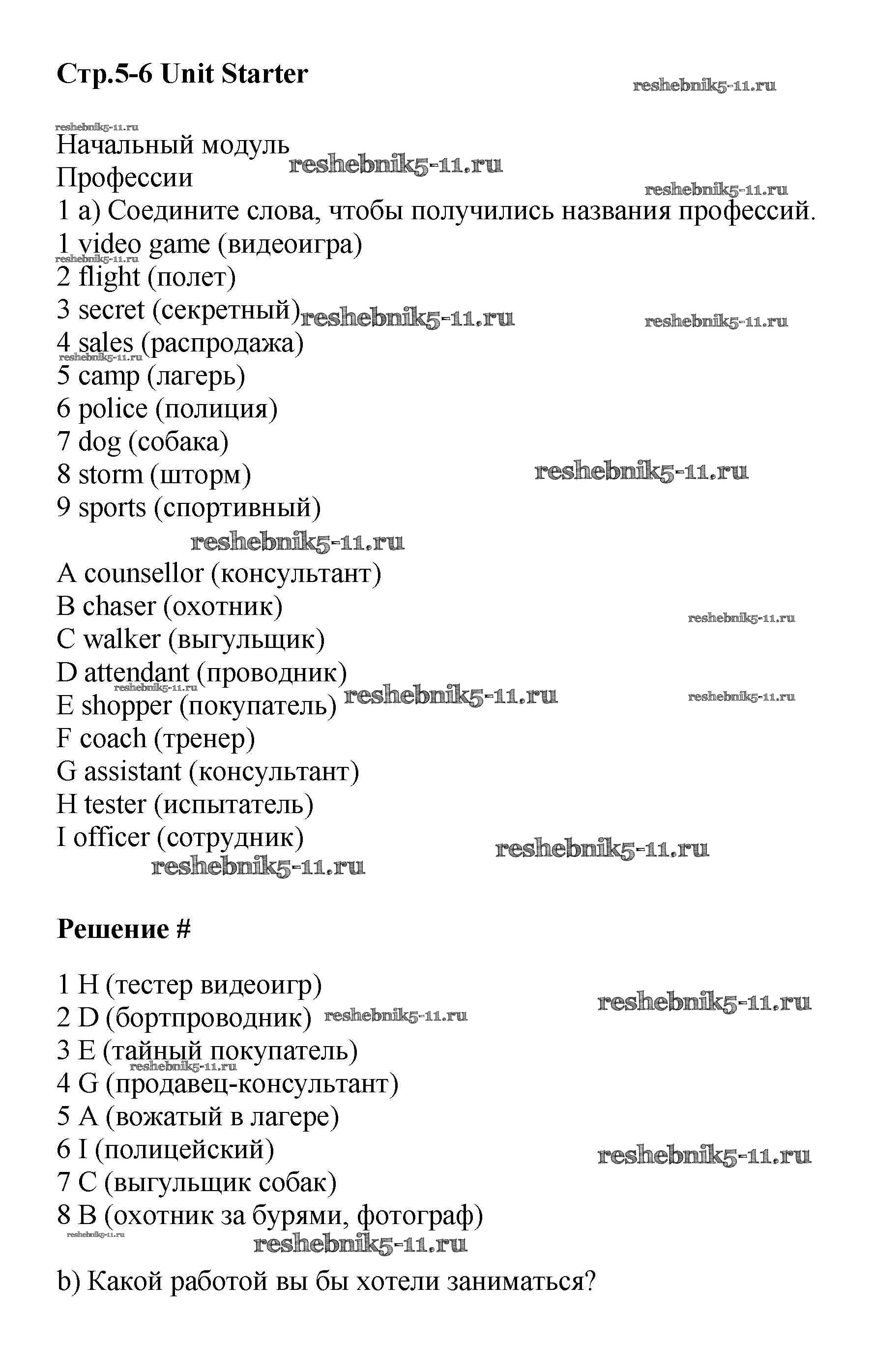 Готовая домашняя работа с ответами по Английскому языку за 8 класс Баранова, Дули, Эванс, Копылова, Мильруд Учебник Starlight Углубленный уровень Просвещение 2016 ФГОС - Starter Module стр.5-6