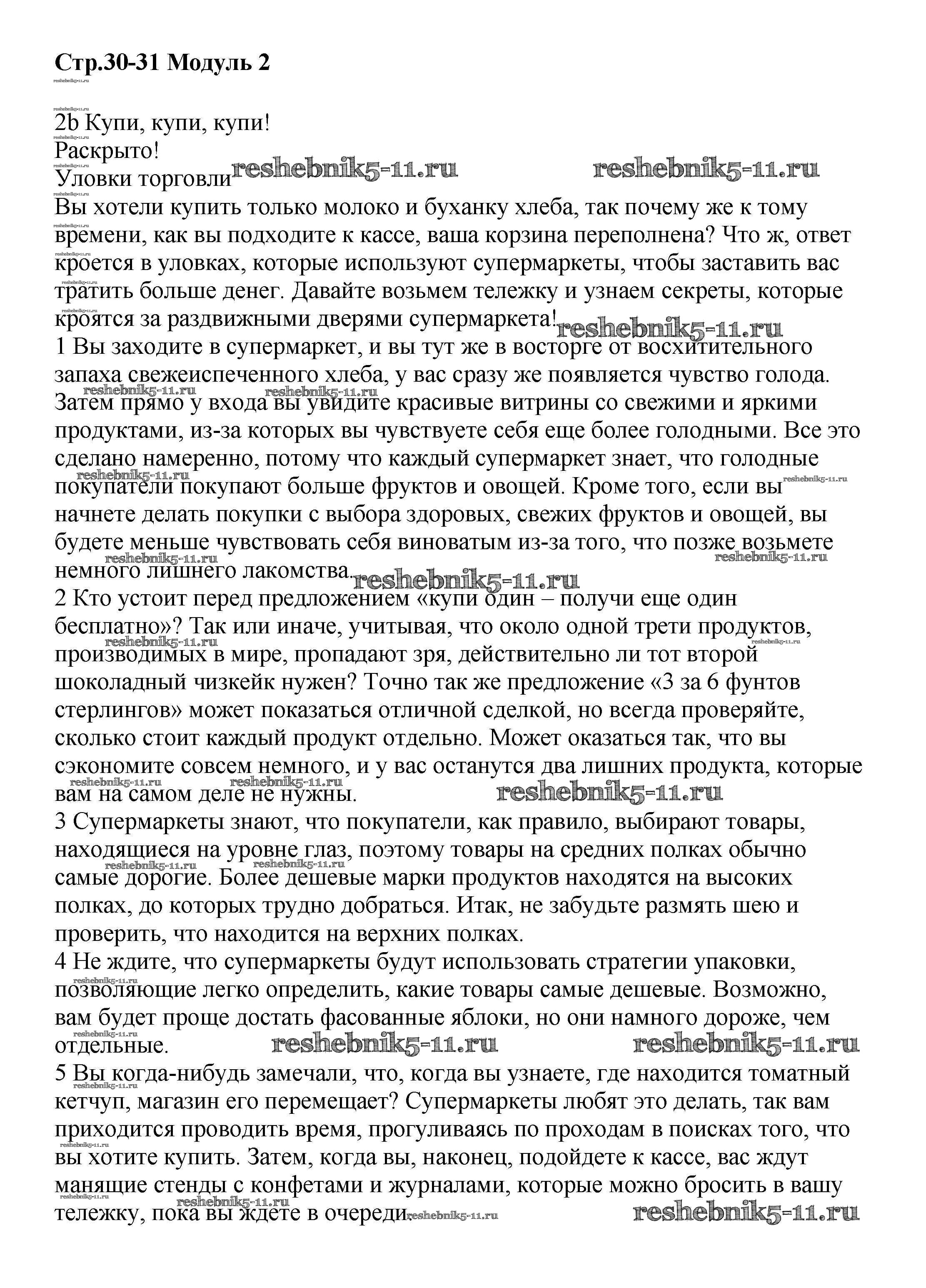 Готовая домашняя работа с ответами по Английскому языку за 8 класс Баранова, Дули, Эванс, Копылова, Мильруд Учебник Starlight Углубленный уровень Просвещение 2016 ФГОС - Мodule 2. Consumer society стр.30-31
