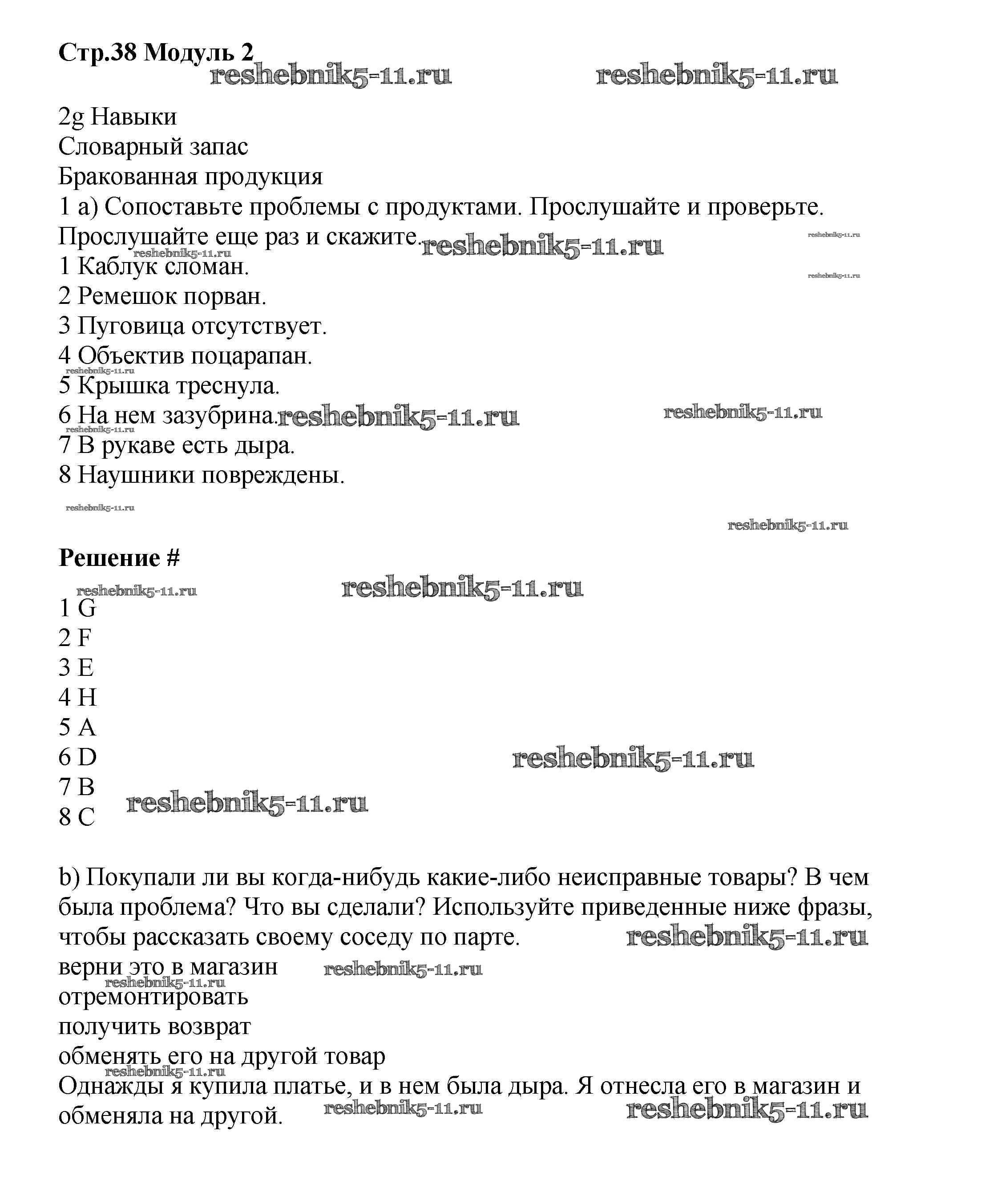 Готовая домашняя работа с ответами по Английскому языку за 8 класс Баранова, Дули, Эванс, Копылова, Мильруд Учебник Starlight Углубленный уровень Просвещение 2016 ФГОС - Мodule 2. Consumer society стр.38