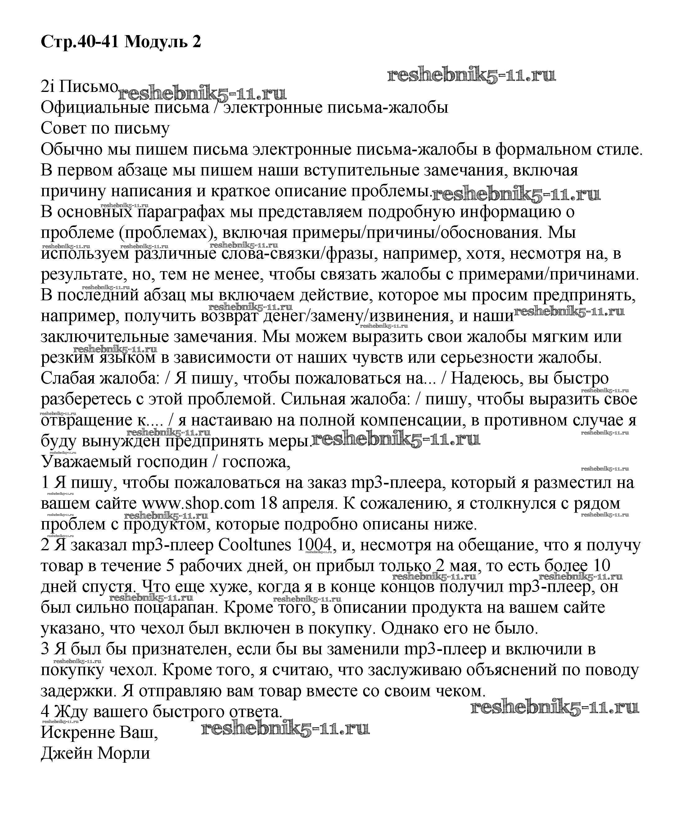 Готовая домашняя работа с ответами по Английскому языку за 8 класс Баранова, Дули, Эванс, Копылова, Мильруд Учебник Starlight Углубленный уровень Просвещение 2016 ФГОС - Мodule 2. Consumer society стр.40-41