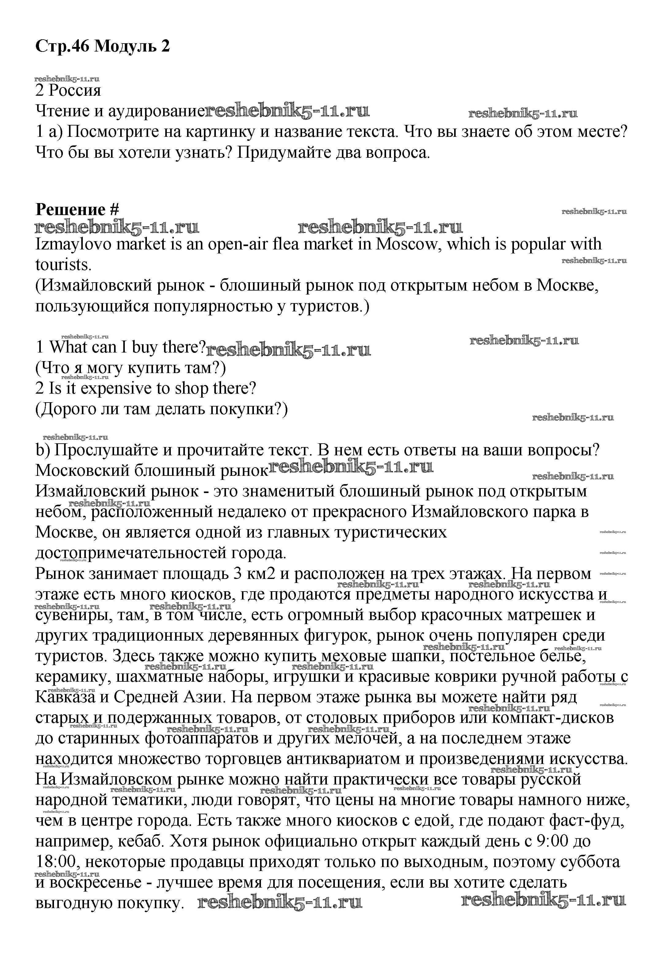 Готовая домашняя работа с ответами по Английскому языку за 8 класс Баранова, Дули, Эванс, Копылова, Мильруд Учебник Starlight Углубленный уровень Просвещение 2016 ФГОС - Мodule 2. Consumer society стр.46