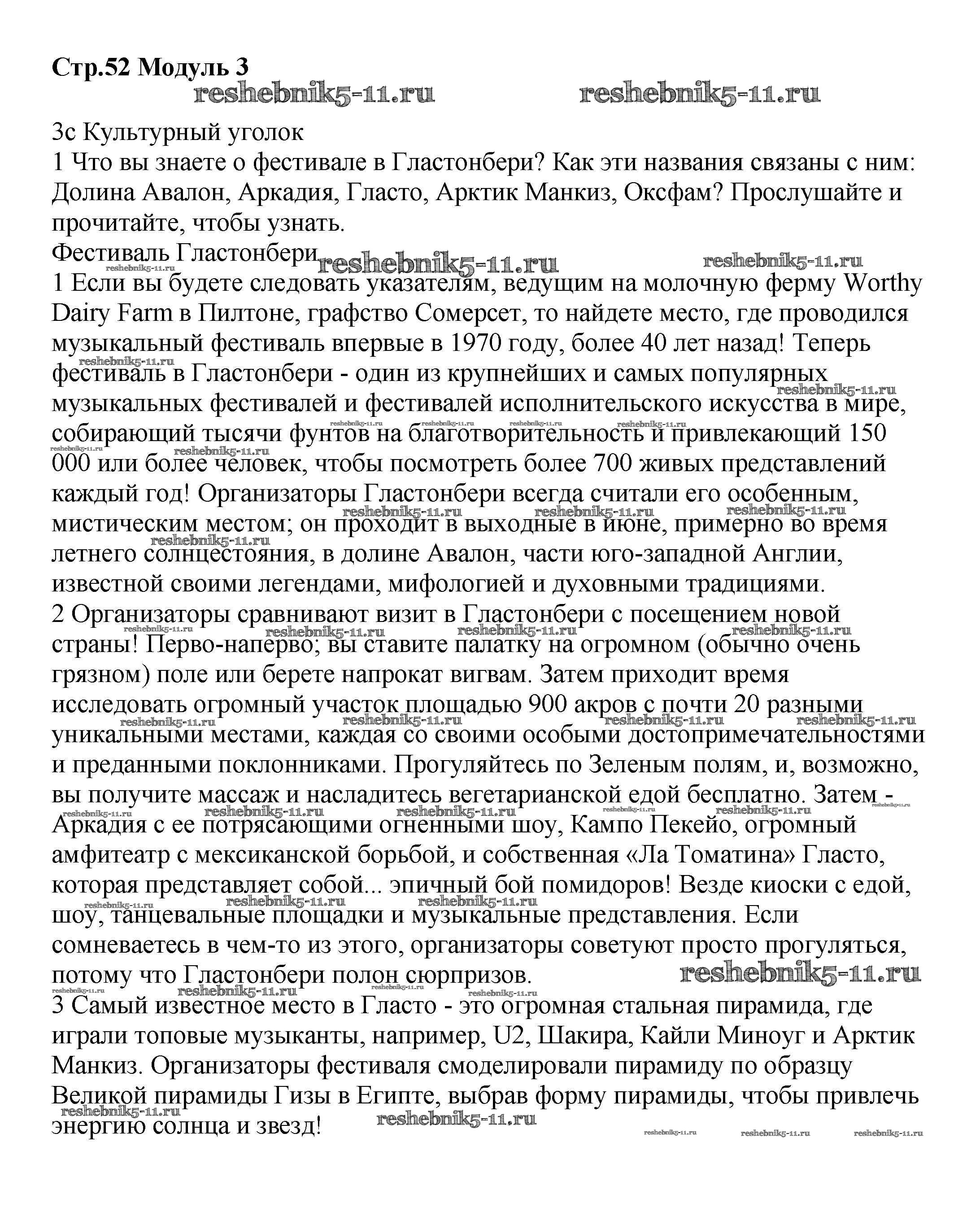 Английский язык за 8 класс Баранова Учебник Starlight Углубленный уровень Просвещение module 3 стр.52