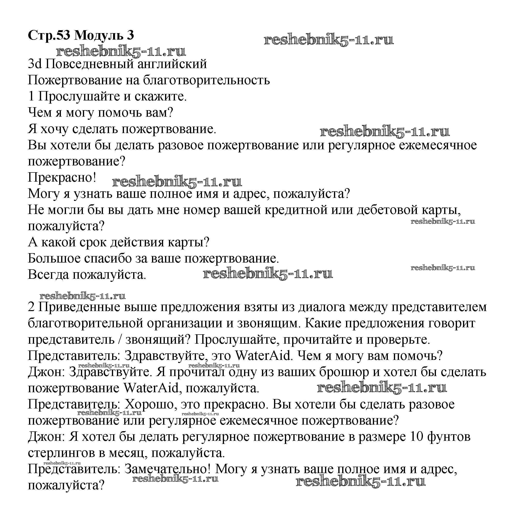 Готовая домашняя работа с ответами по Английскому языку за 8 класс Баранова, Дули, Эванс, Копылова, Мильруд Учебник Starlight Углубленный уровень Просвещение 2016 ФГОС - Мodule 3. Doing the right thing стр.53