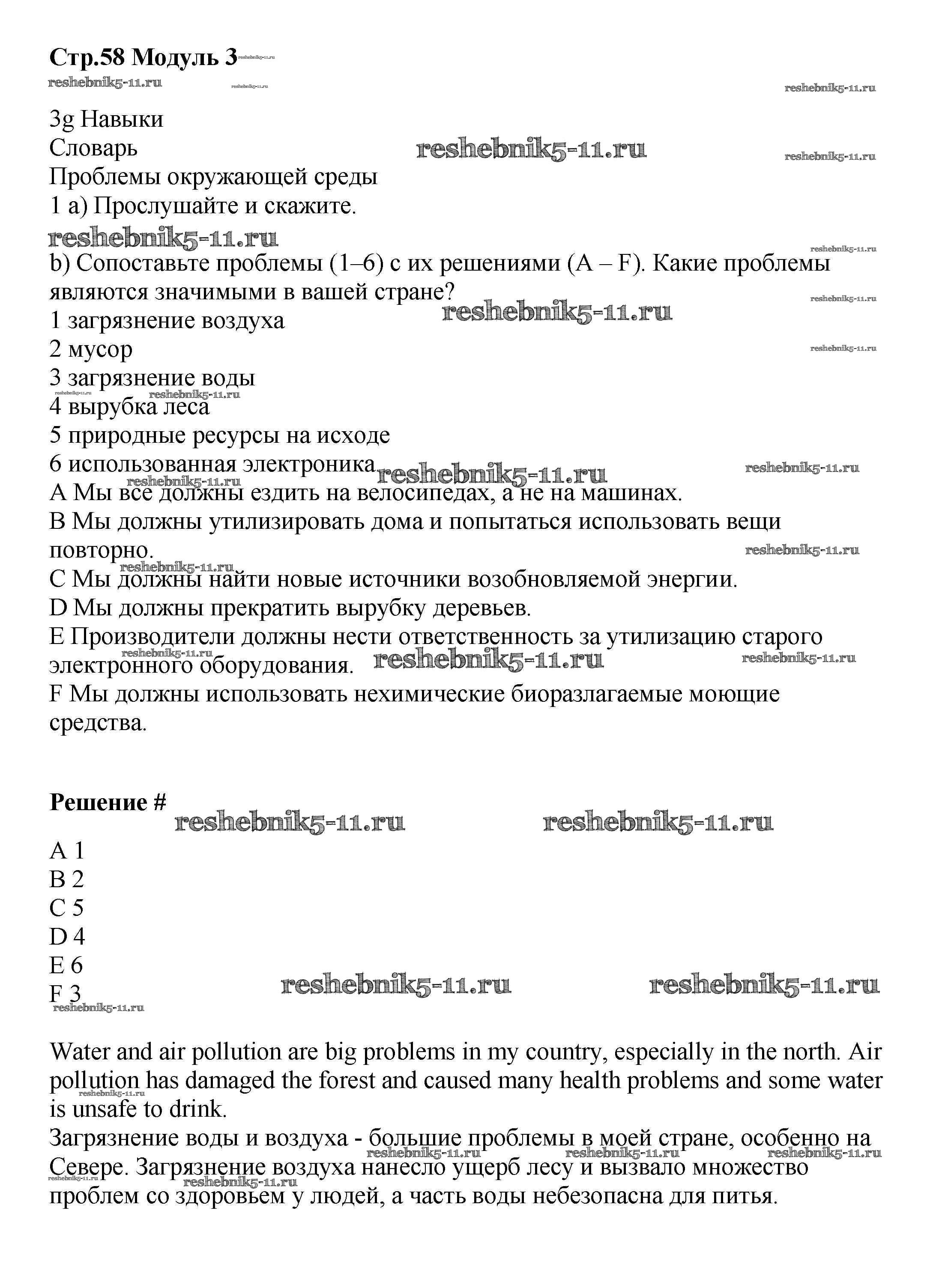 Готовая домашняя работа с ответами по Английскому языку за 8 класс Баранова, Дули, Эванс, Копылова, Мильруд Учебник Starlight Углубленный уровень Просвещение 2016 ФГОС - Мodule 3. Doing the right thing стр.58