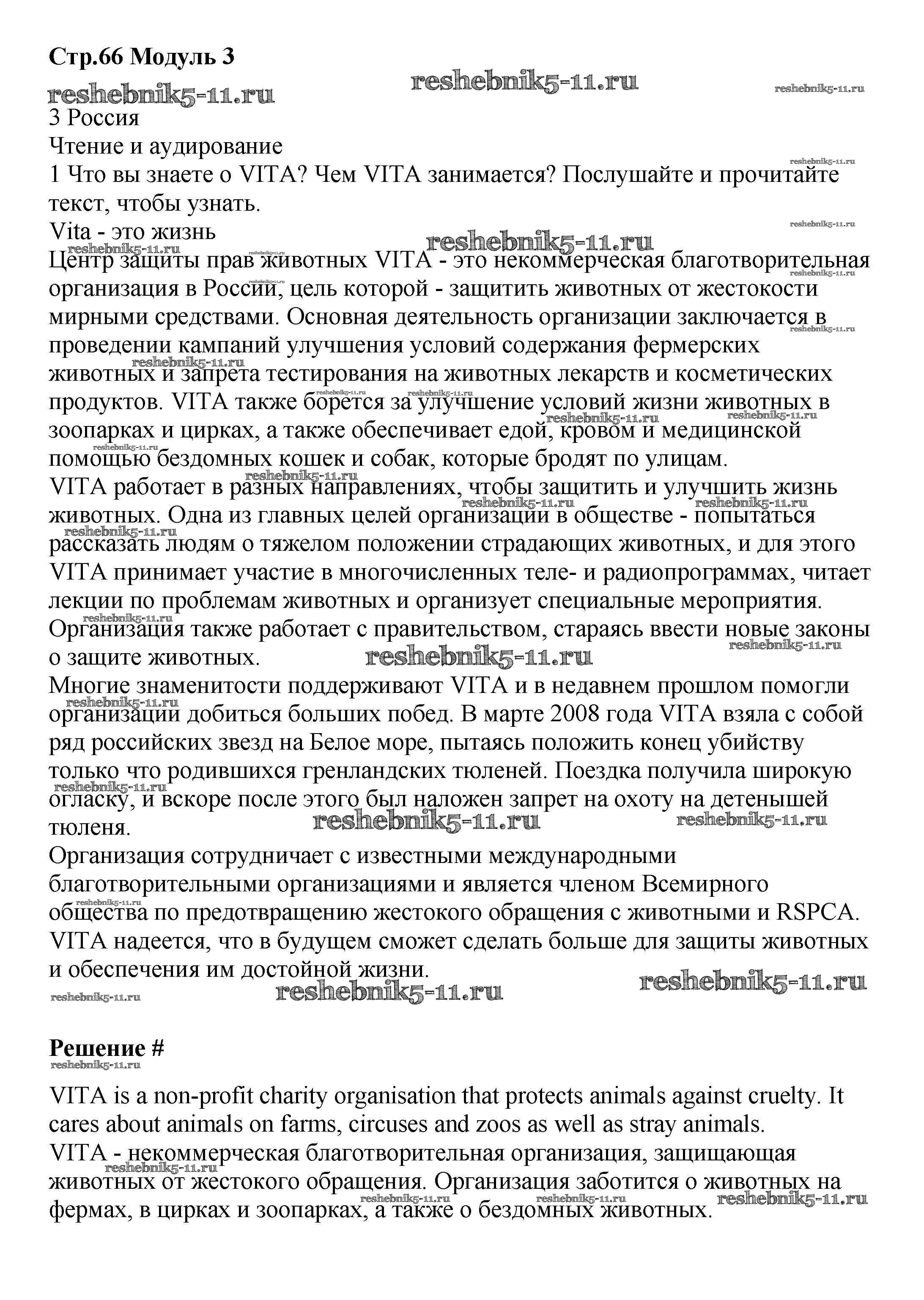 Английский язык за 8 класс Баранова Учебник Starlight Углубленный уровень Просвещение module 3 стр.66