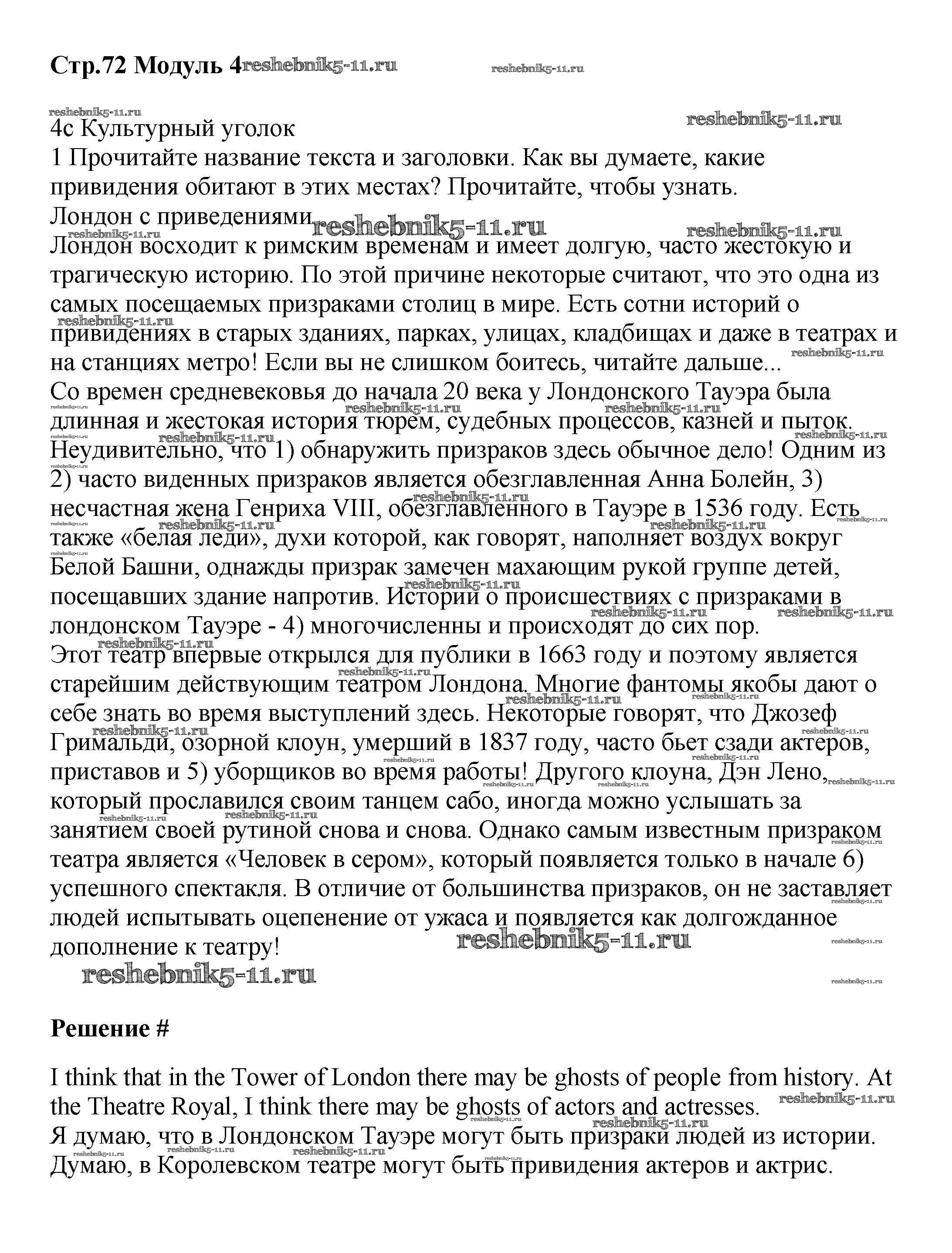 Готовая домашняя работа с ответами по Английскому языку за 8 класс Баранова, Дули, Эванс, Копылова, Мильруд Учебник Starlight Углубленный уровень Просвещение 2016 ФГОС - Мodule 4. Still a mystery стр.72