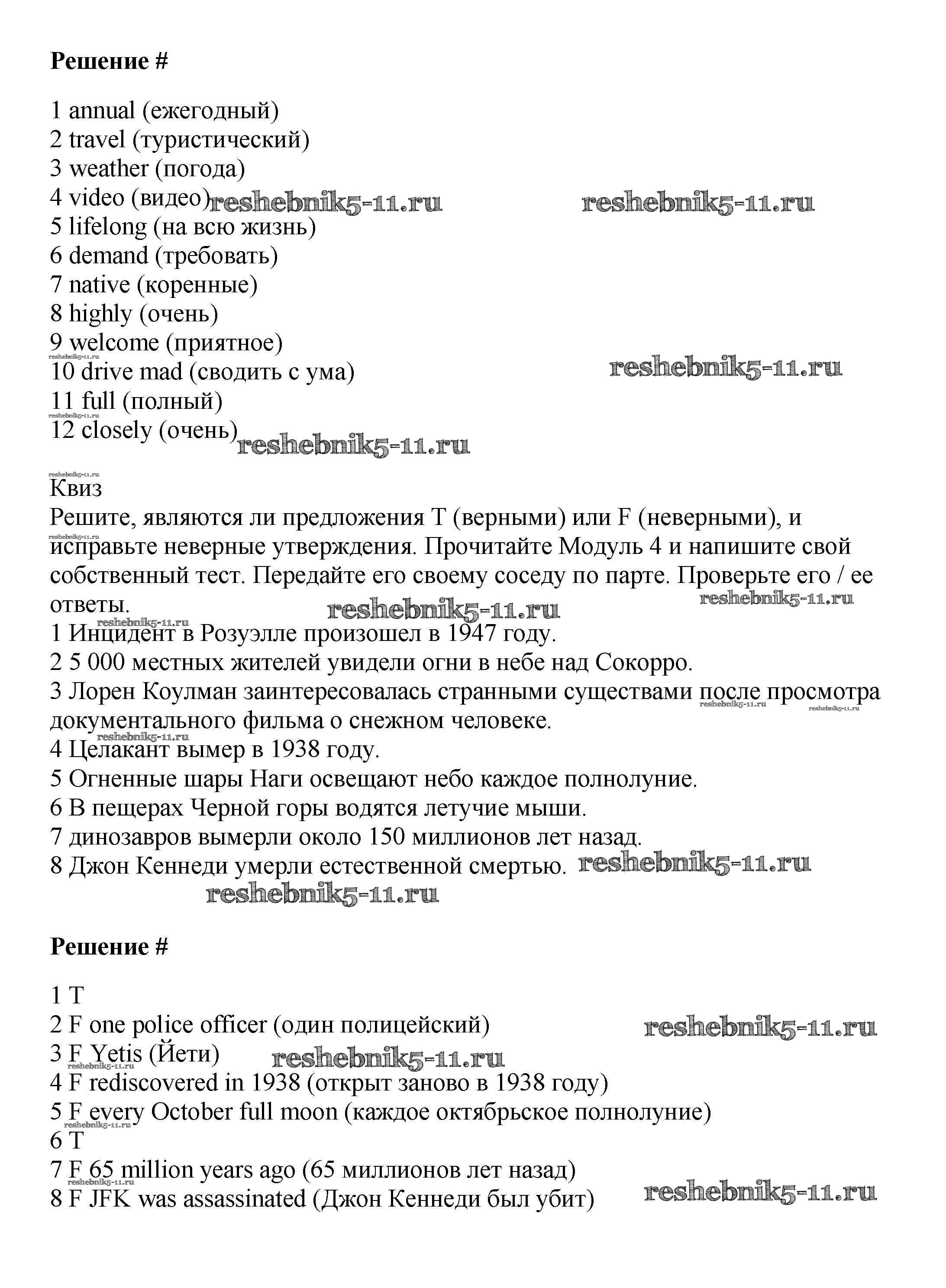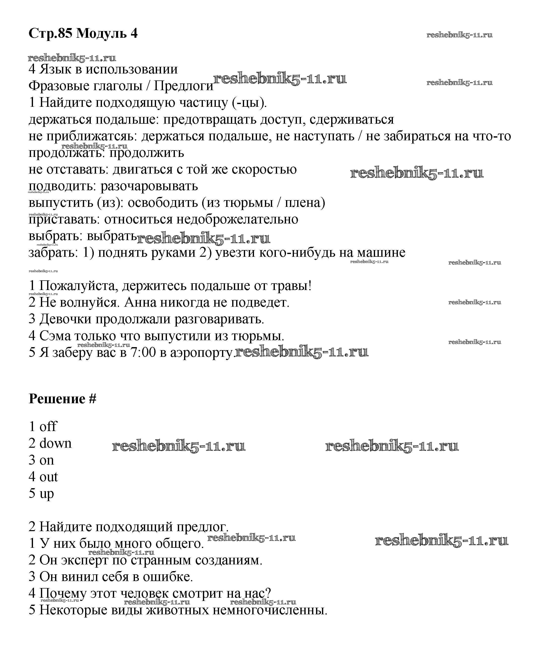Готовая домашняя работа с ответами по Английскому языку за 8 класс Баранова, Дули, Эванс, Копылова, Мильруд Учебник Starlight Углубленный уровень Просвещение 2016 ФГОС - Мodule 4. Still a mystery стр.85