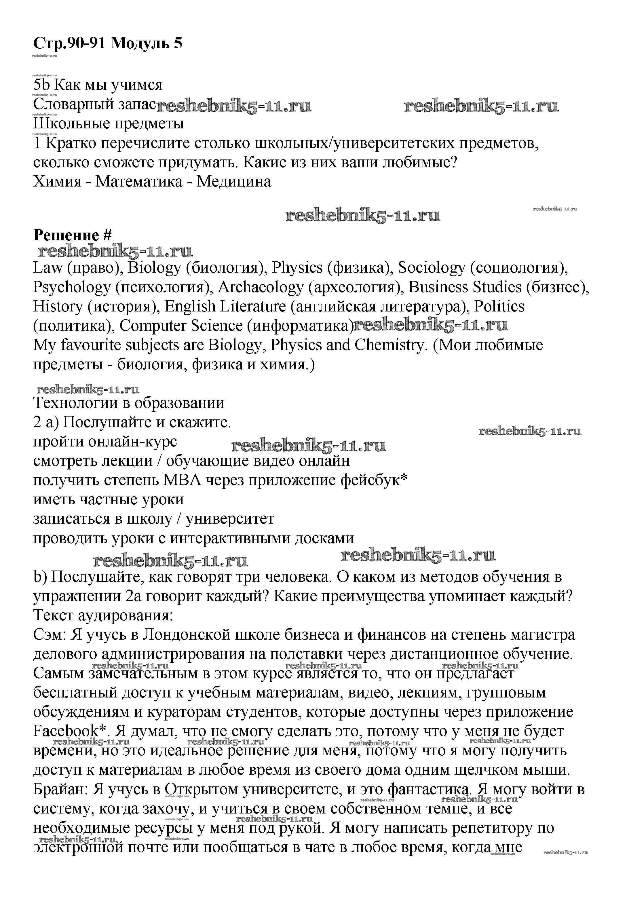 Готовая домашняя работа с ответами по Английскому языку за 8 класс Баранова, Дули, Эванс, Копылова, Мильруд Учебник Starlight Углубленный уровень Просвещение 2016 ФГОС - Мodule 5. Lifelong learning стр.90-91