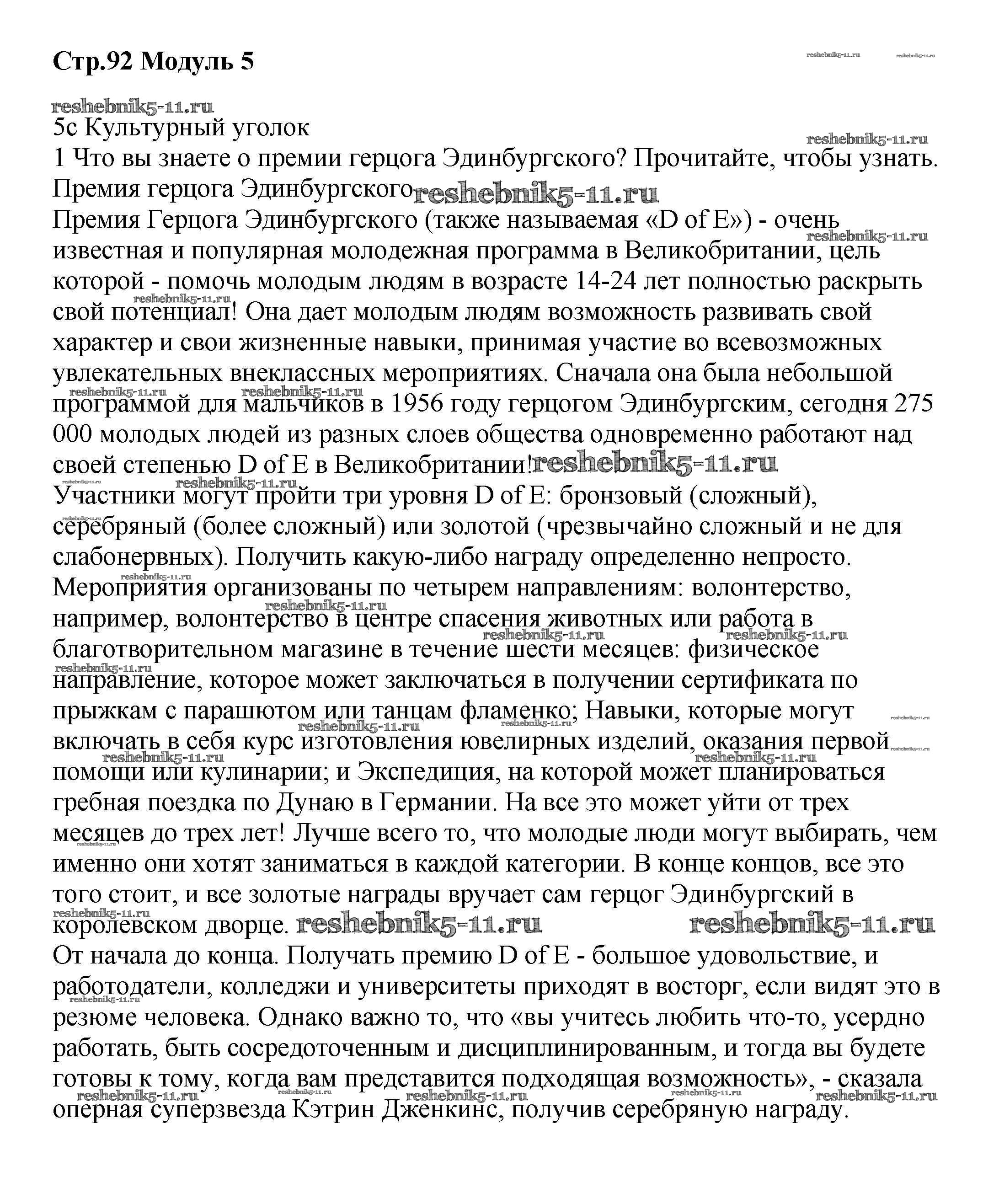Английский язык за 8 класс Баранова Учебник Starlight Углубленный уровень Просвещение module 5 стр.92