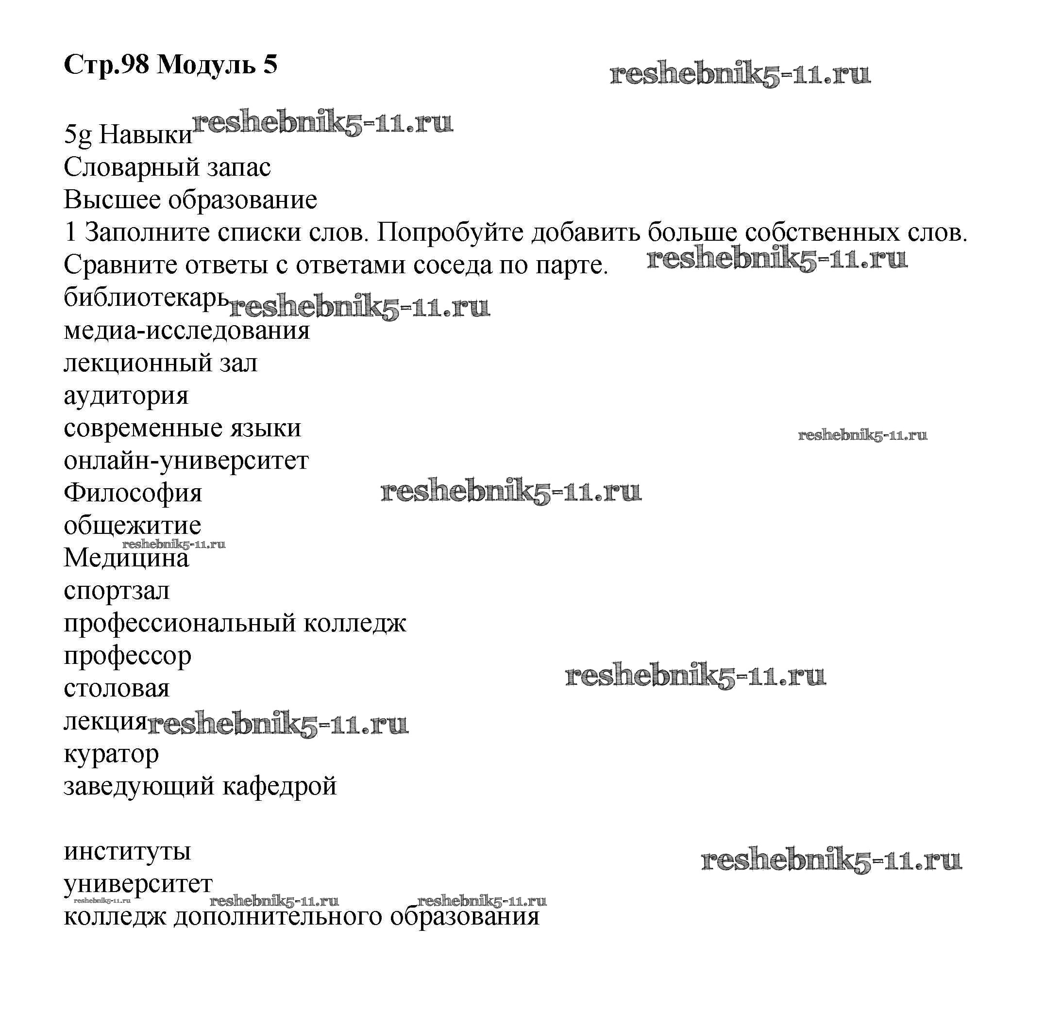 Готовая домашняя работа с ответами по Английскому языку за 8 класс Баранова, Дули, Эванс, Копылова, Мильруд Учебник Starlight Углубленный уровень Просвещение 2016 ФГОС - Мodule 5. Lifelong learning стр.98