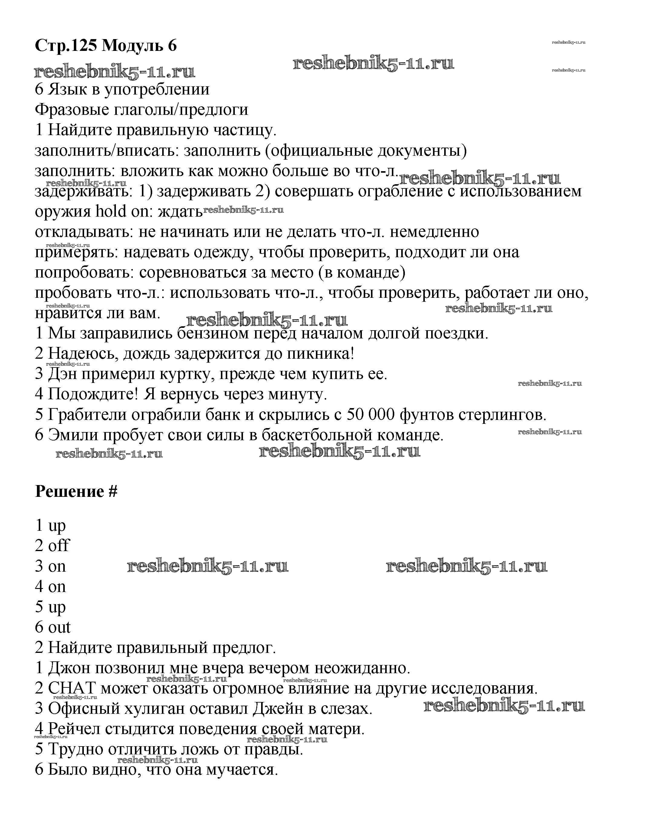 Готовая домашняя работа с ответами по Английскому языку за 8 класс Баранова, Дули, Эванс, Копылова, Мильруд Учебник Starlight Углубленный уровень Просвещение 2016 ФГОС - Мodule 6. Getting to know you стр.125