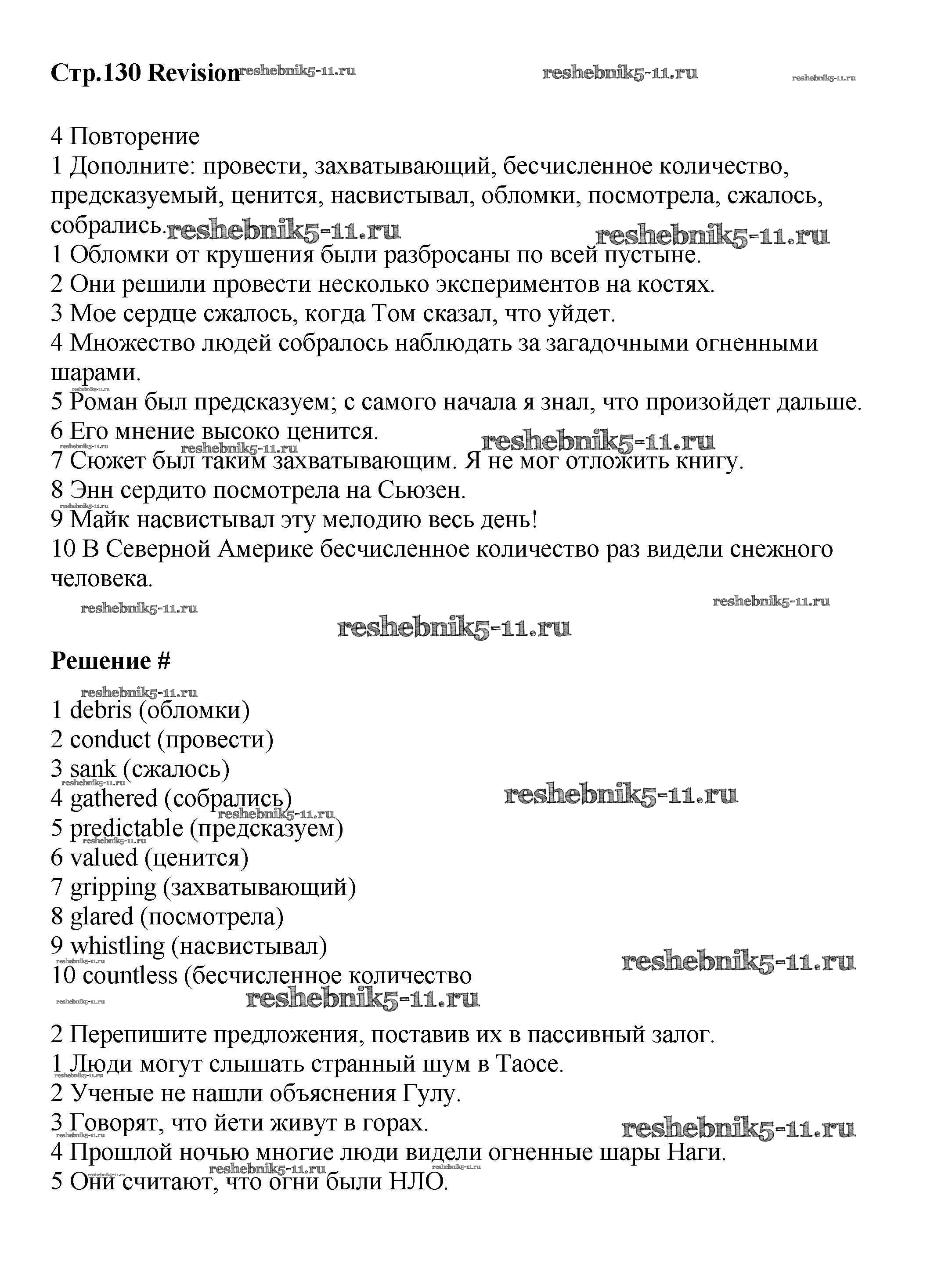 Готовая домашняя работа с ответами по Английскому языку за 8 класс Баранова, Дули, Эванс, Копылова, Мильруд Учебник Starlight Углубленный уровень Просвещение 2016 ФГОС - Revision стр.130