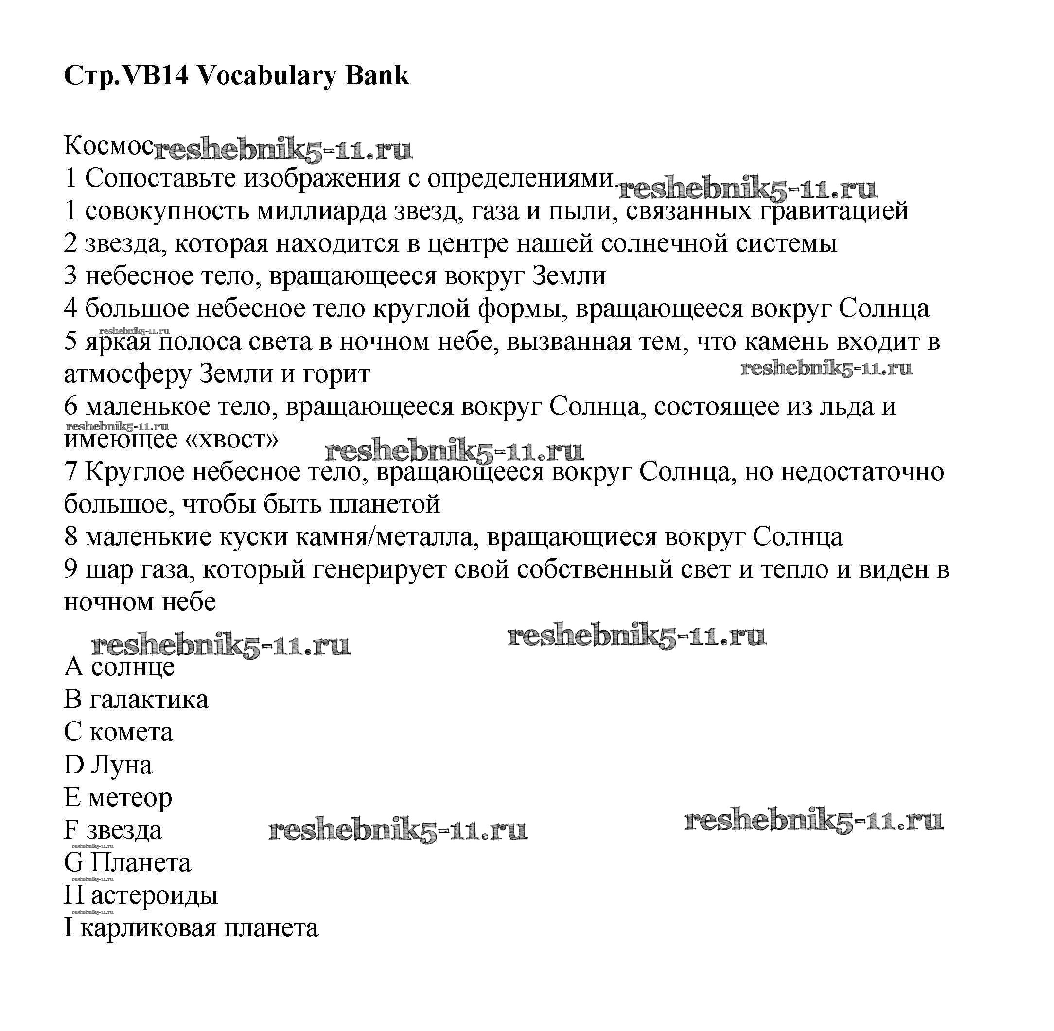 Готовая домашняя работа с ответами по Английскому языку за 8 класс Баранова, Дули, Эванс, Копылова, Мильруд Учебник Starlight Углубленный уровень Просвещение 2016 ФГОС - Vocabulary Bank VB14