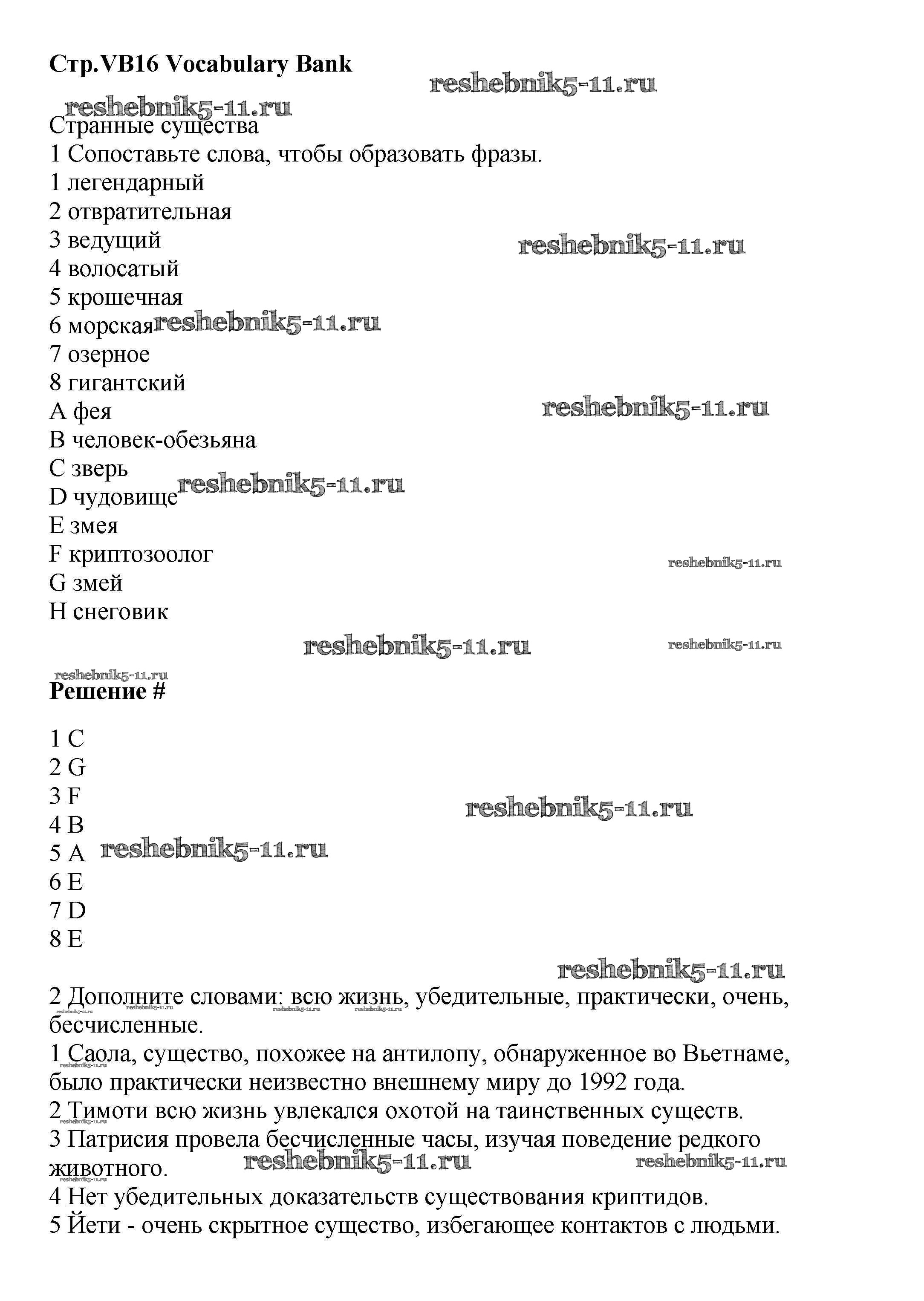 Готовая домашняя работа с ответами по Английскому языку за 8 класс Баранова, Дули, Эванс, Копылова, Мильруд Учебник Starlight Углубленный уровень Просвещение 2016 ФГОС - Vocabulary Bank VB16