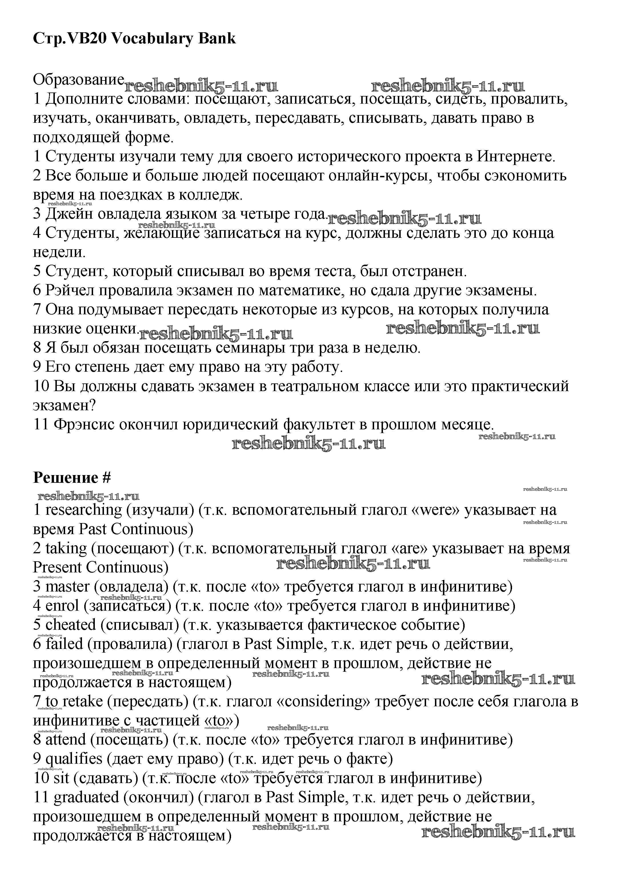Готовая домашняя работа с ответами по Английскому языку за 8 класс Баранова, Дули, Эванс, Копылова, Мильруд Учебник Starlight Углубленный уровень Просвещение 2016 ФГОС - Vocabulary Bank VB20