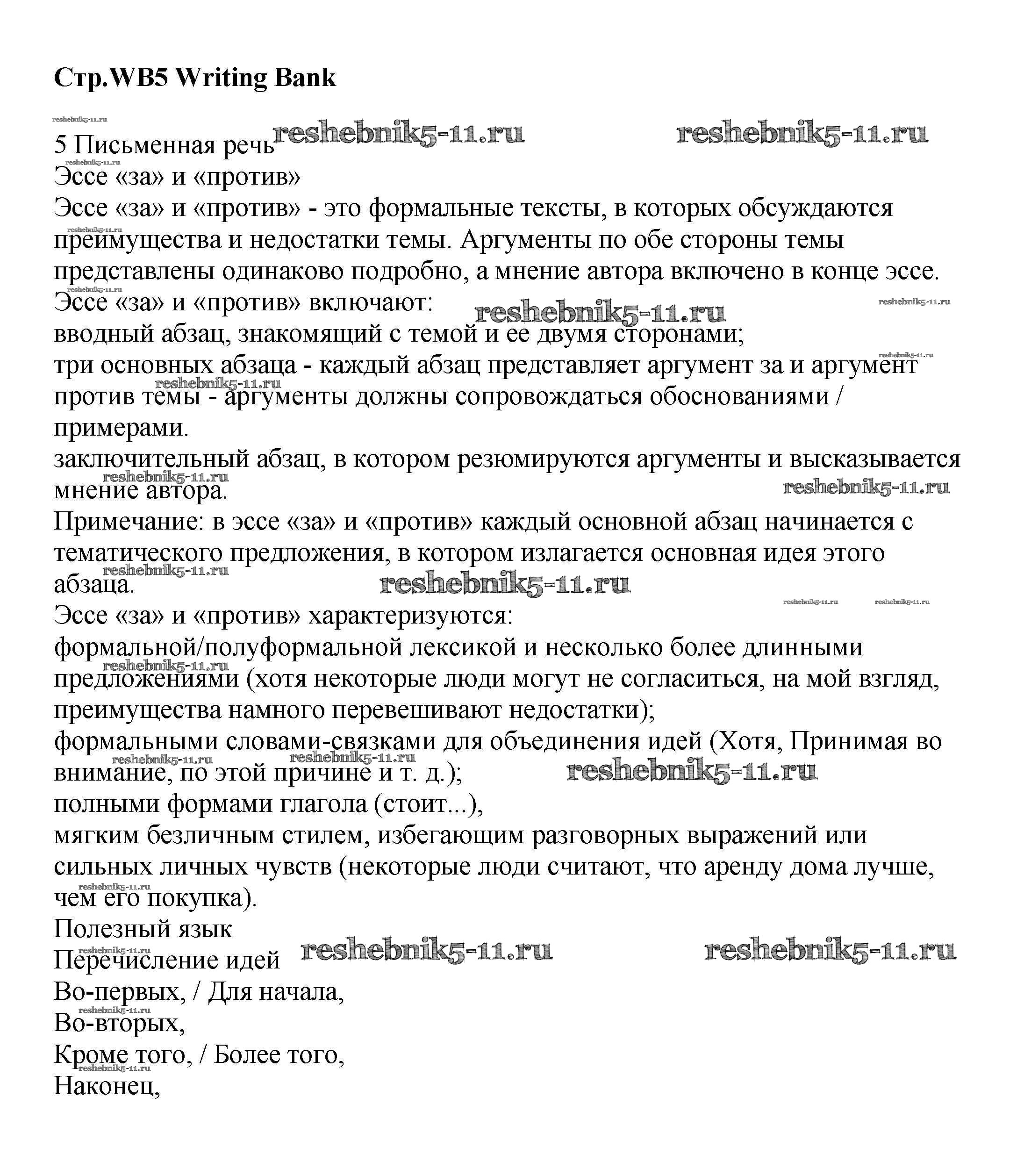 Готовая домашняя работа с ответами по Английскому языку за 8 класс Баранова, Дули, Эванс, Копылова, Мильруд Учебник Starlight Углубленный уровень Просвещение 2016 ФГОС - Writing Bank WB5