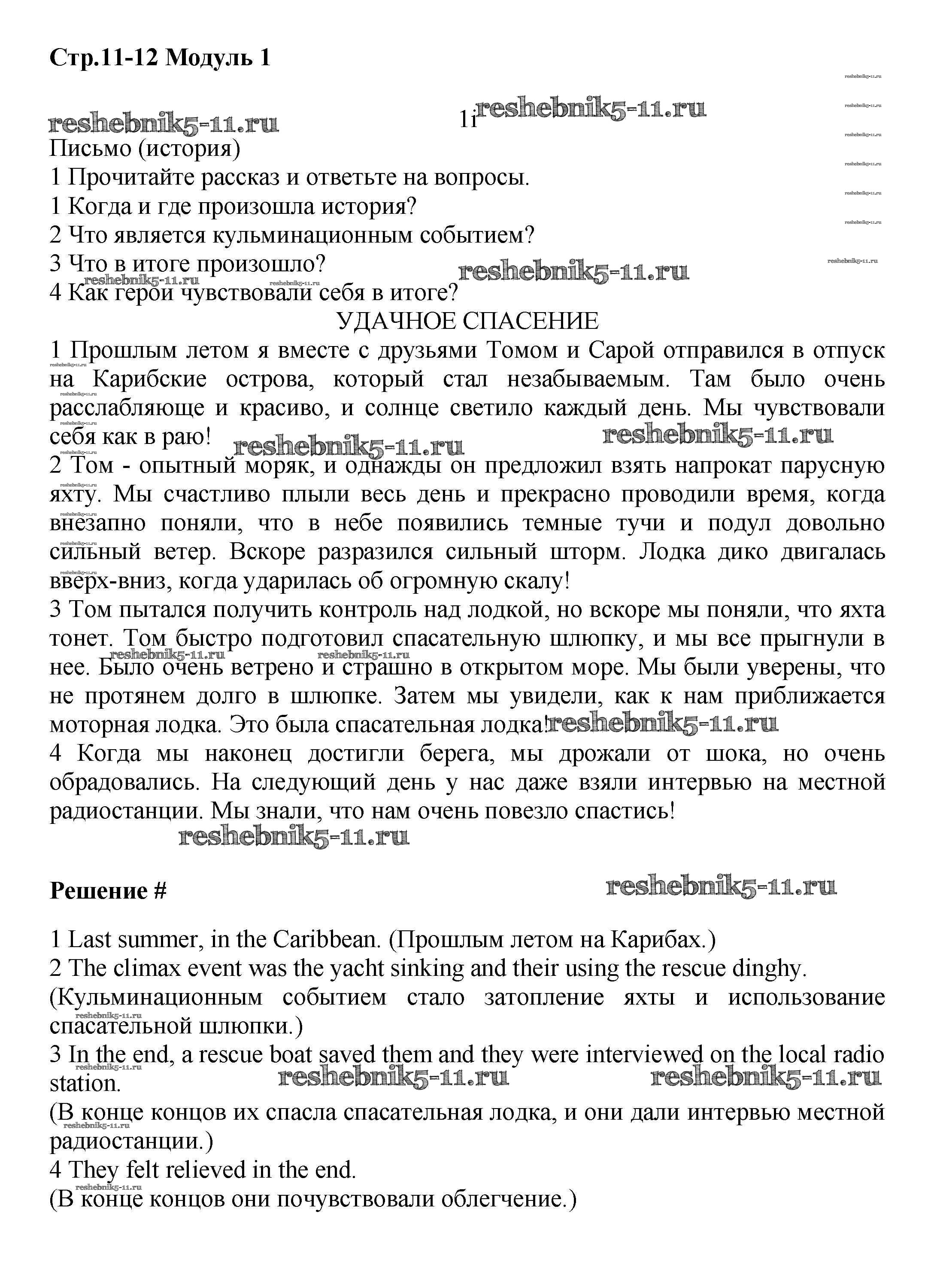 Готовая домашняя работа с ответами по Английскому языку за 8 класс Баранова, Дули, Эванс, Копылова, Мильруд Рабочая тетрадь Starlight Углубленный уровень Просвещение 2015 ФГОС - Module 1 стр.11-12