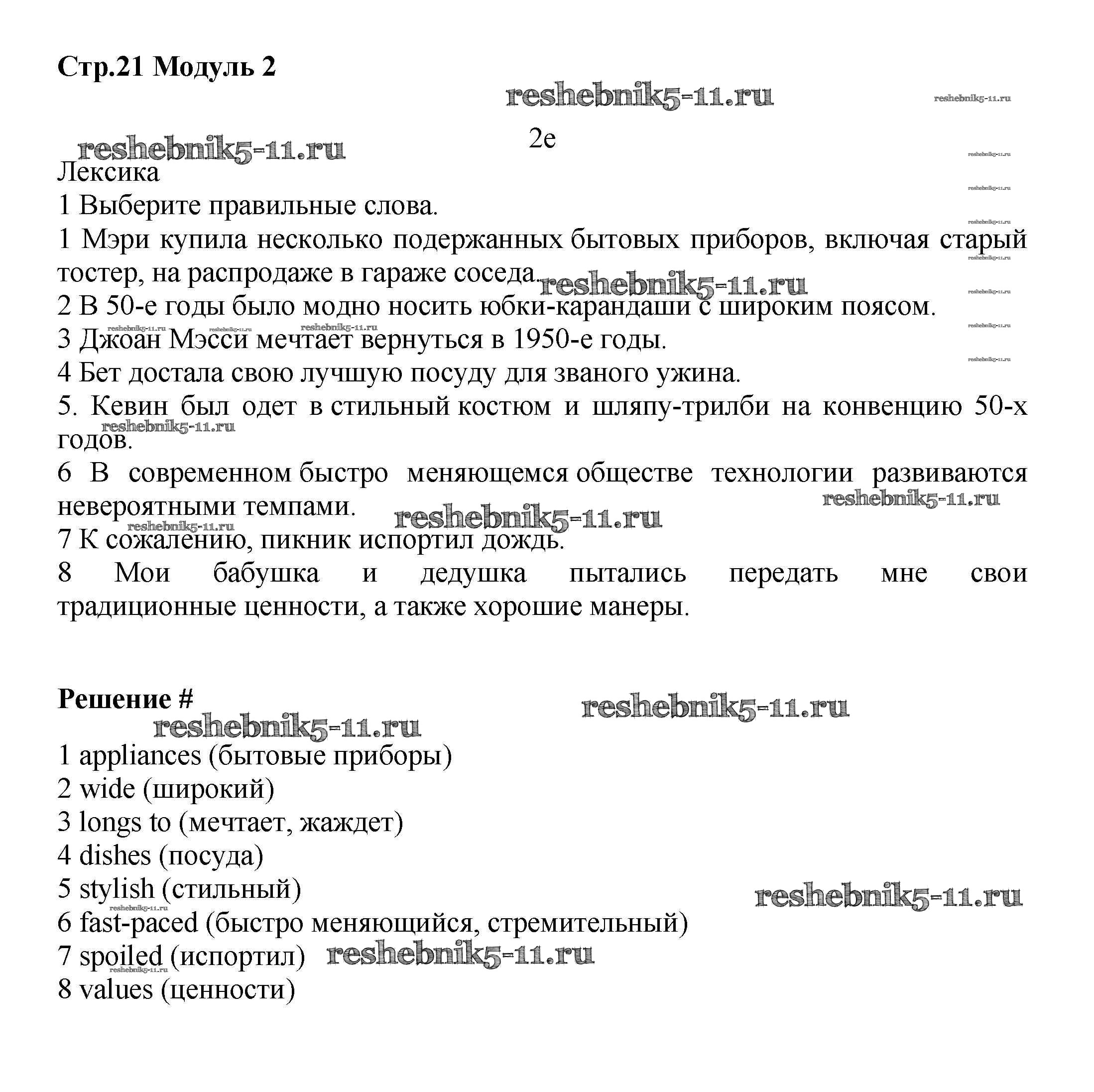 Готовая домашняя работа с ответами по Английскому языку за 8 класс Баранова, Дули, Эванс, Копылова, Мильруд Рабочая тетрадь Starlight Углубленный уровень Просвещение 2015 ФГОС - Module 2 стр.21