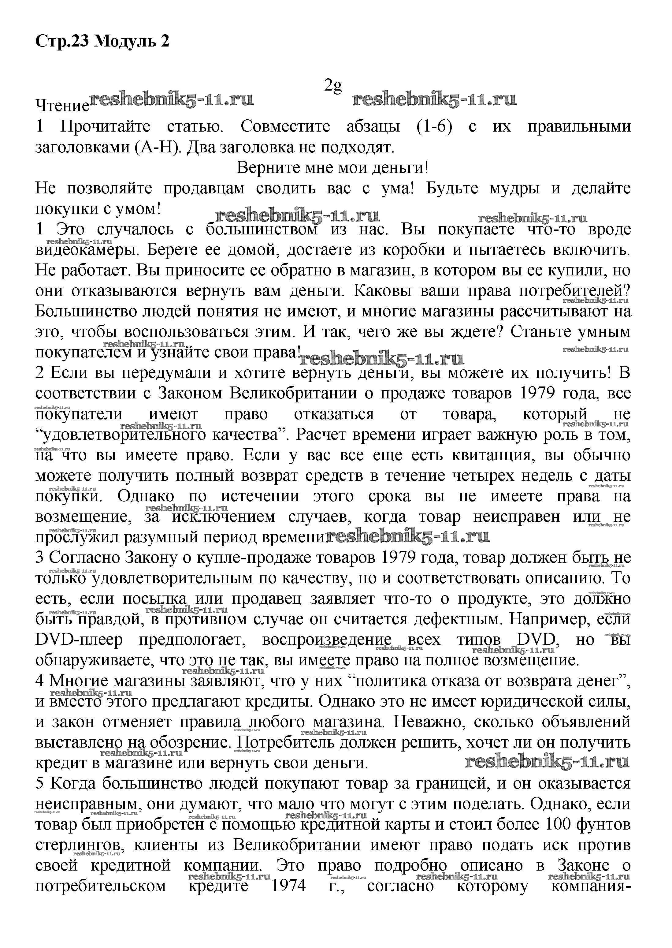Готовая домашняя работа с ответами по Английскому языку за 8 класс Баранова, Дули, Эванс, Копылова, Мильруд Рабочая тетрадь Starlight Углубленный уровень Просвещение 2015 ФГОС - Module 2 стр.23