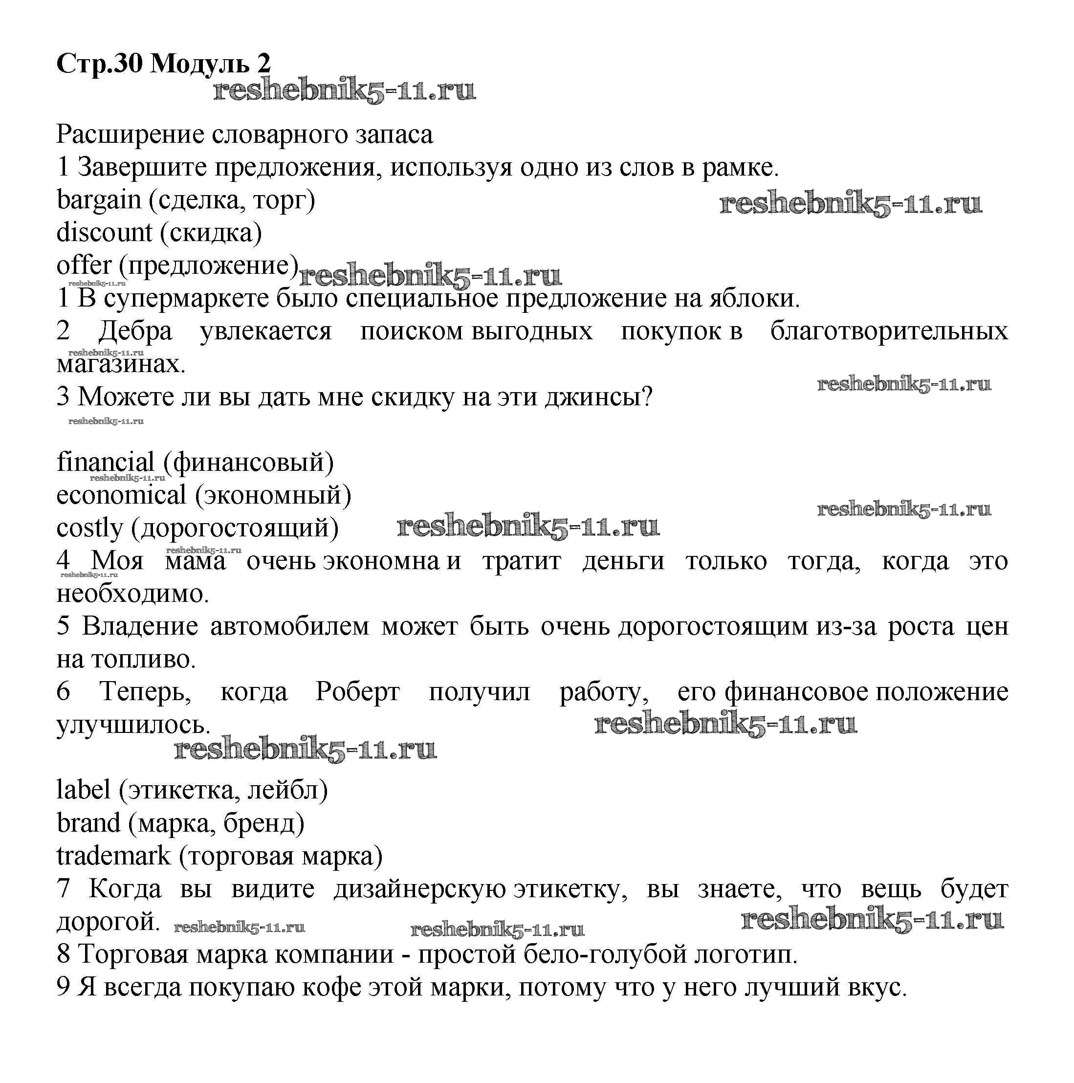Готовая домашняя работа с ответами по Английскому языку за 8 класс Баранова, Дули, Эванс, Копылова, Мильруд Рабочая тетрадь Starlight Углубленный уровень Просвещение 2015 ФГОС - Module 2 стр.30