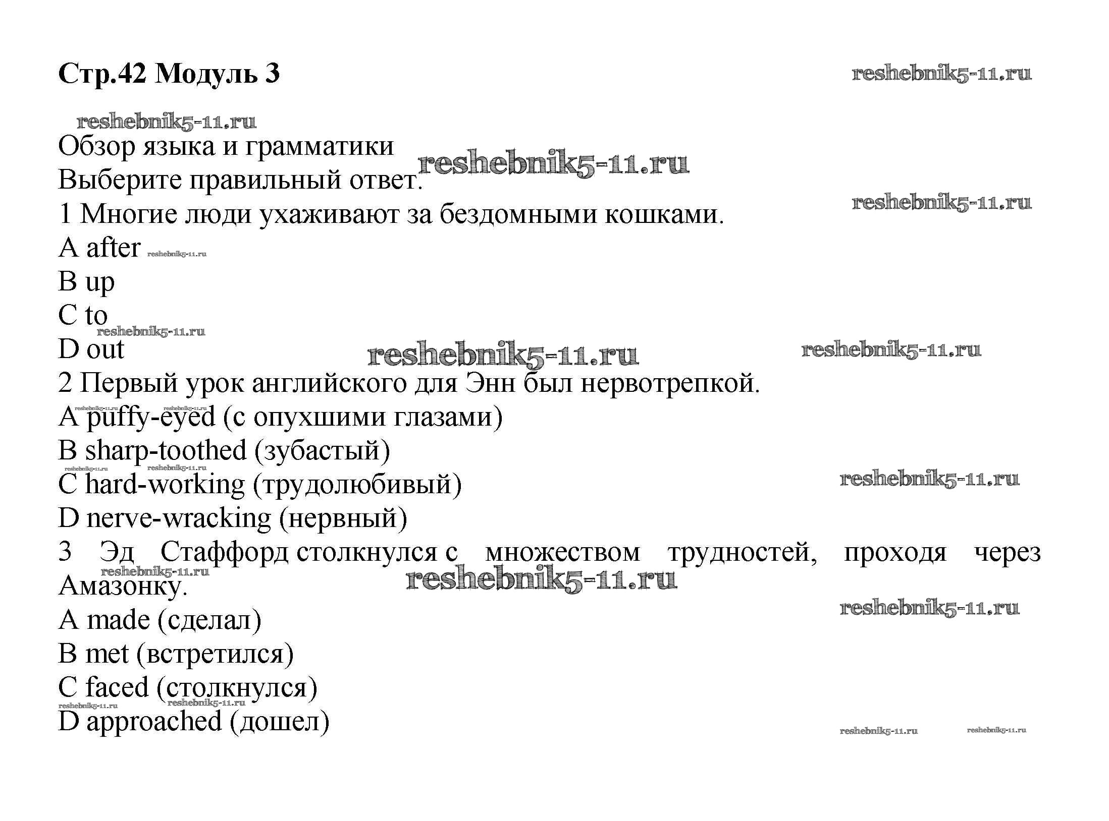 Готовая домашняя работа с ответами по Английскому языку за 8 класс Баранова, Дули, Эванс, Копылова, Мильруд Рабочая тетрадь Starlight Углубленный уровень Просвещение 2015 ФГОС - Module 3 стр.42