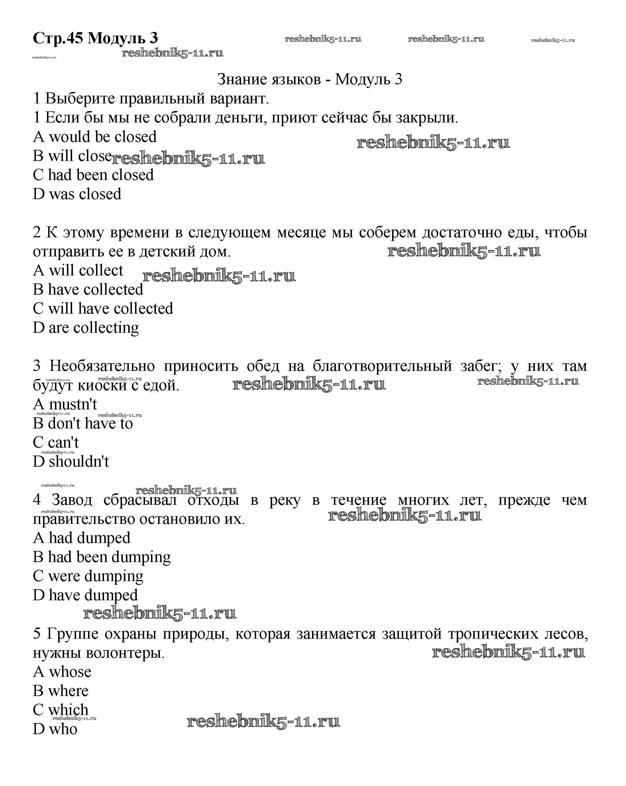 Готовая домашняя работа с ответами по Английскому языку за 8 класс Баранова, Дули, Эванс, Копылова, Мильруд Рабочая тетрадь Starlight Углубленный уровень Просвещение 2015 ФГОС - Module 3 стр.45