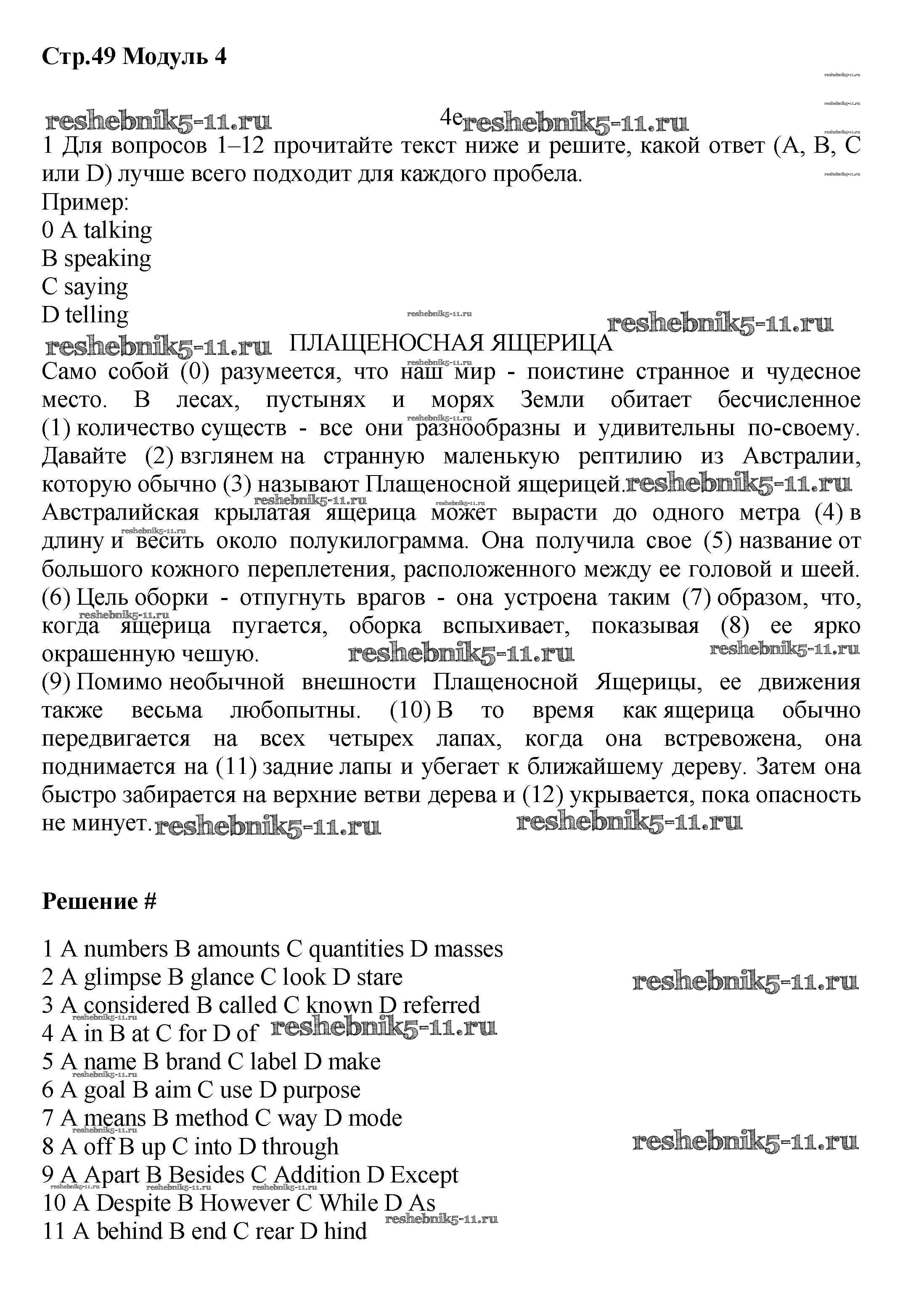 Готовая домашняя работа с ответами по Английскому языку за 8 класс Баранова, Дули, Эванс, Копылова, Мильруд Рабочая тетрадь Starlight Углубленный уровень Просвещение 2015 ФГОС - Module 4 стр.49