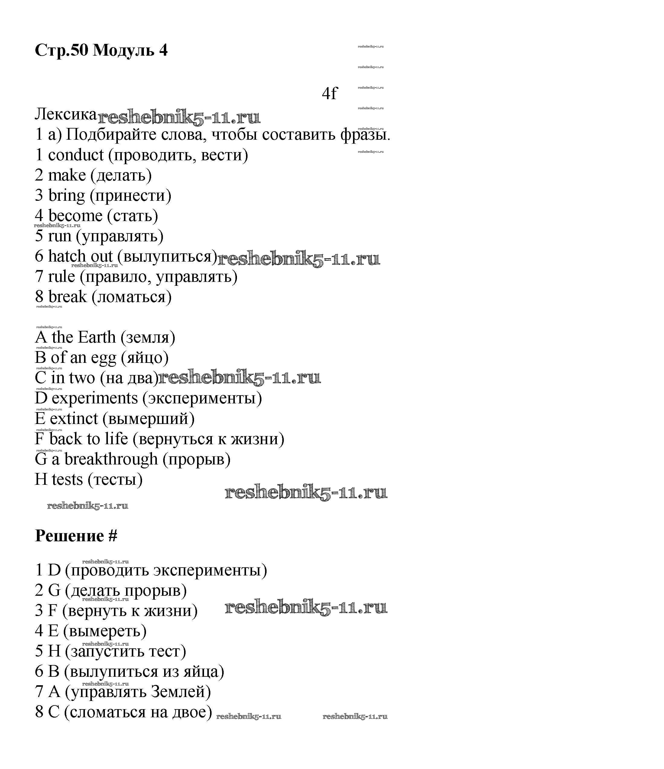 Готовая домашняя работа с ответами по Английскому языку за 8 класс Баранова, Дули, Эванс, Копылова, Мильруд Рабочая тетрадь Starlight Углубленный уровень Просвещение 2015 ФГОС - Module 4 стр.50