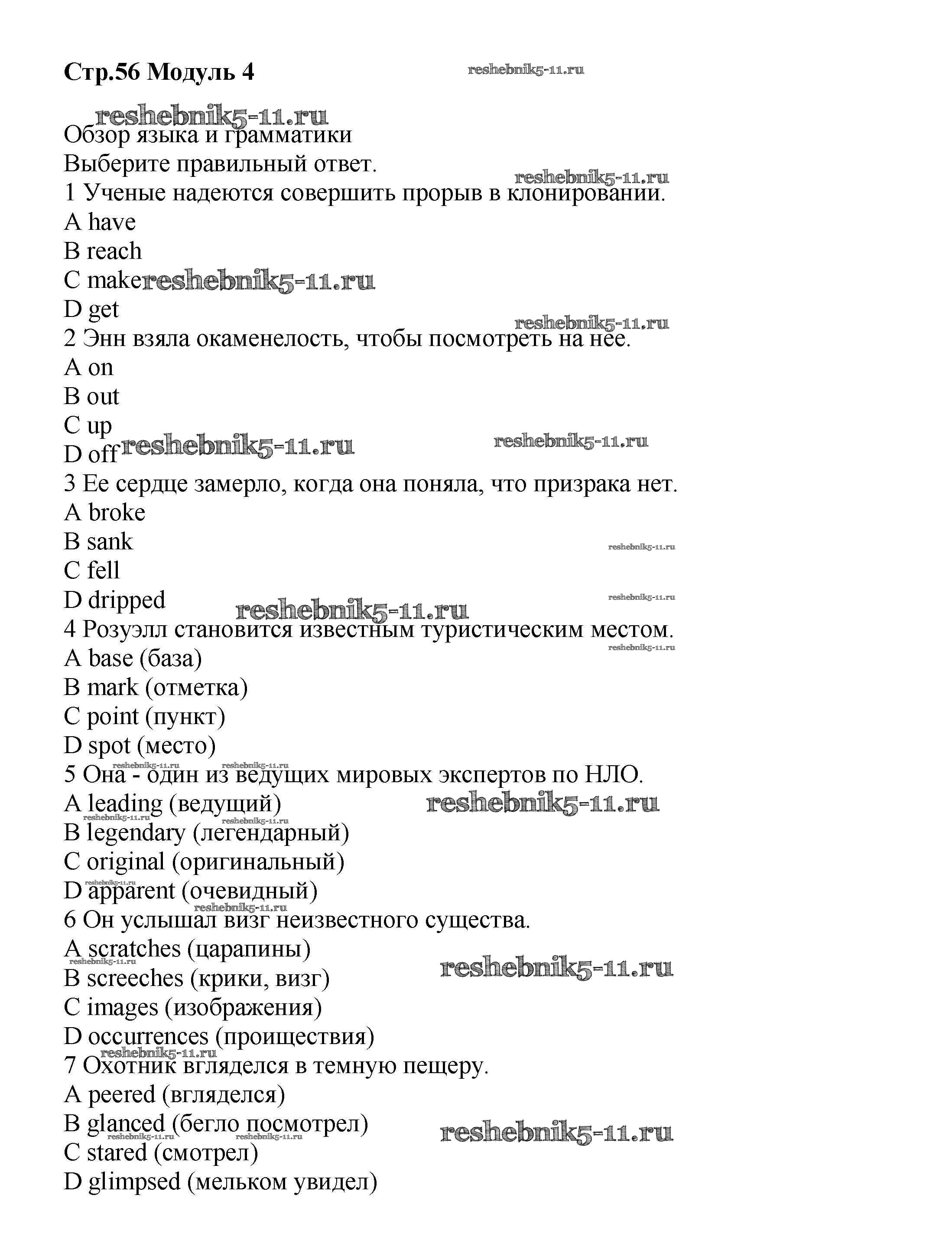 Готовая домашняя работа с ответами по Английскому языку за 8 класс Баранова, Дули, Эванс, Копылова, Мильруд Рабочая тетрадь Starlight Углубленный уровень Просвещение 2015 ФГОС - Module 4 стр.56