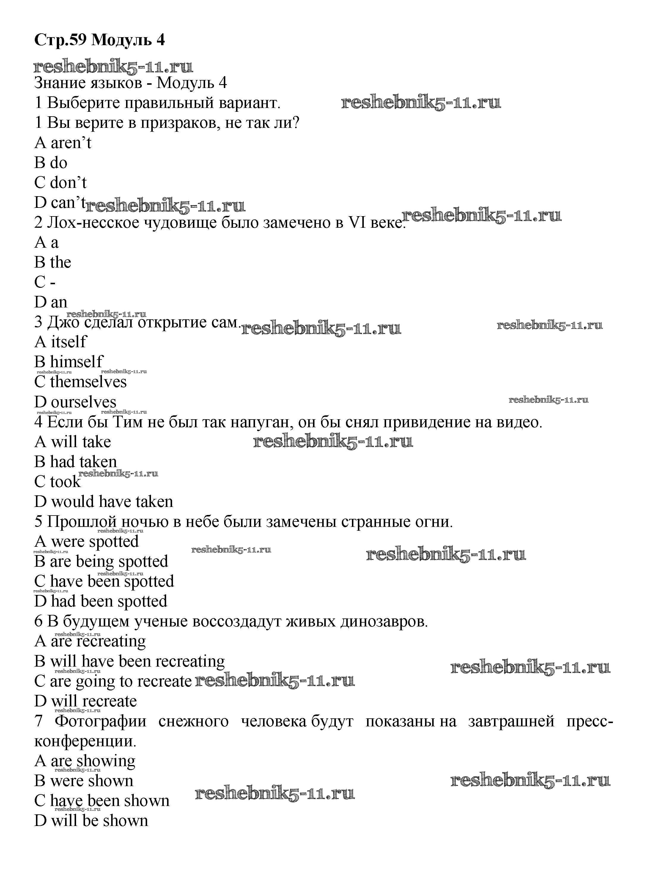 Готовая домашняя работа с ответами по Английскому языку за 8 класс Баранова, Дули, Эванс, Копылова, Мильруд Рабочая тетрадь Starlight Углубленный уровень Просвещение 2015 ФГОС - Module 4 стр.59