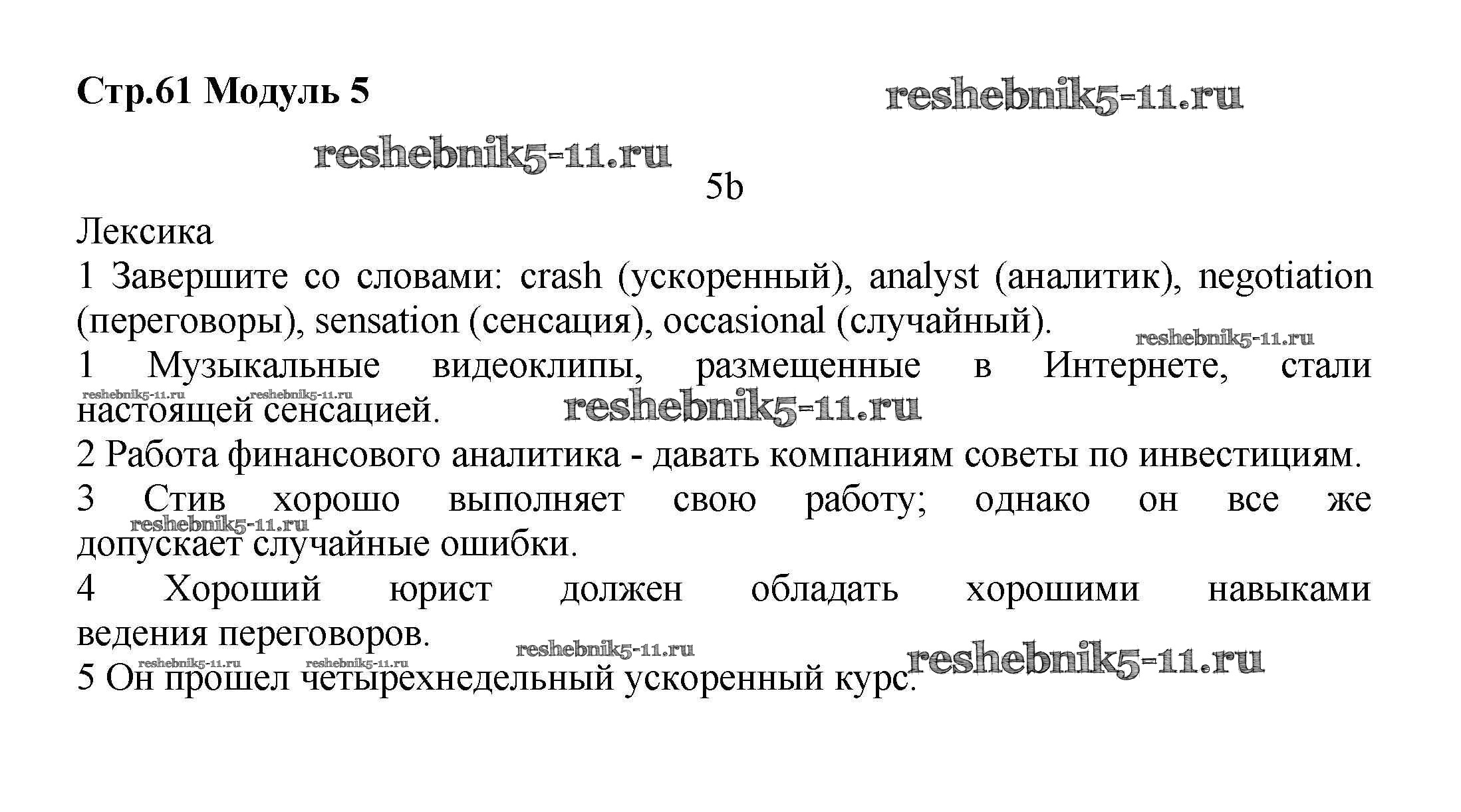 Готовая домашняя работа с ответами по Английскому языку за 8 класс Баранова, Дули, Эванс, Копылова, Мильруд Рабочая тетрадь Starlight Углубленный уровень Просвещение 2015 ФГОС - Module 5 стр.61