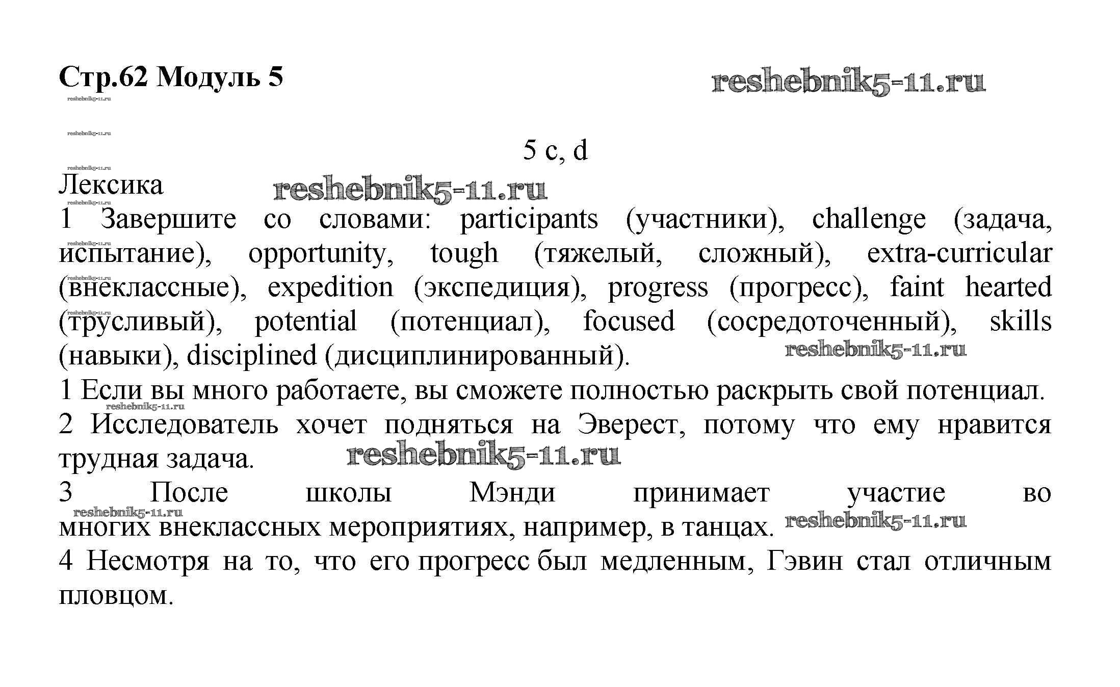 Готовая домашняя работа с ответами по Английскому языку за 8 класс Баранова, Дули, Эванс, Копылова, Мильруд Рабочая тетрадь Starlight Углубленный уровень Просвещение 2015 ФГОС - Module 5 стр.62