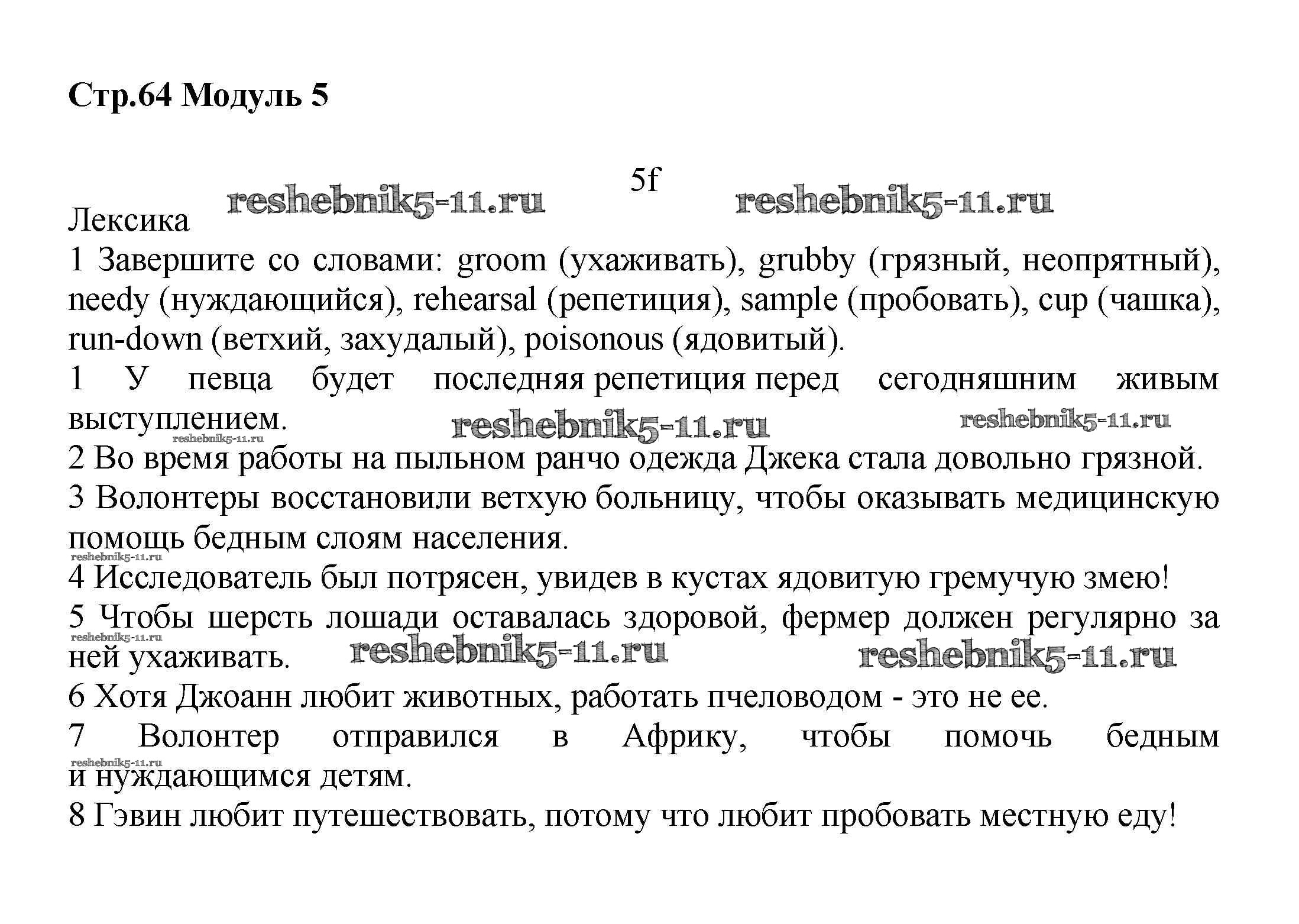 Готовая домашняя работа с ответами по Английскому языку за 8 класс Баранова, Дули, Эванс, Копылова, Мильруд Рабочая тетрадь Starlight Углубленный уровень Просвещение 2015 ФГОС - Module 5 стр.64