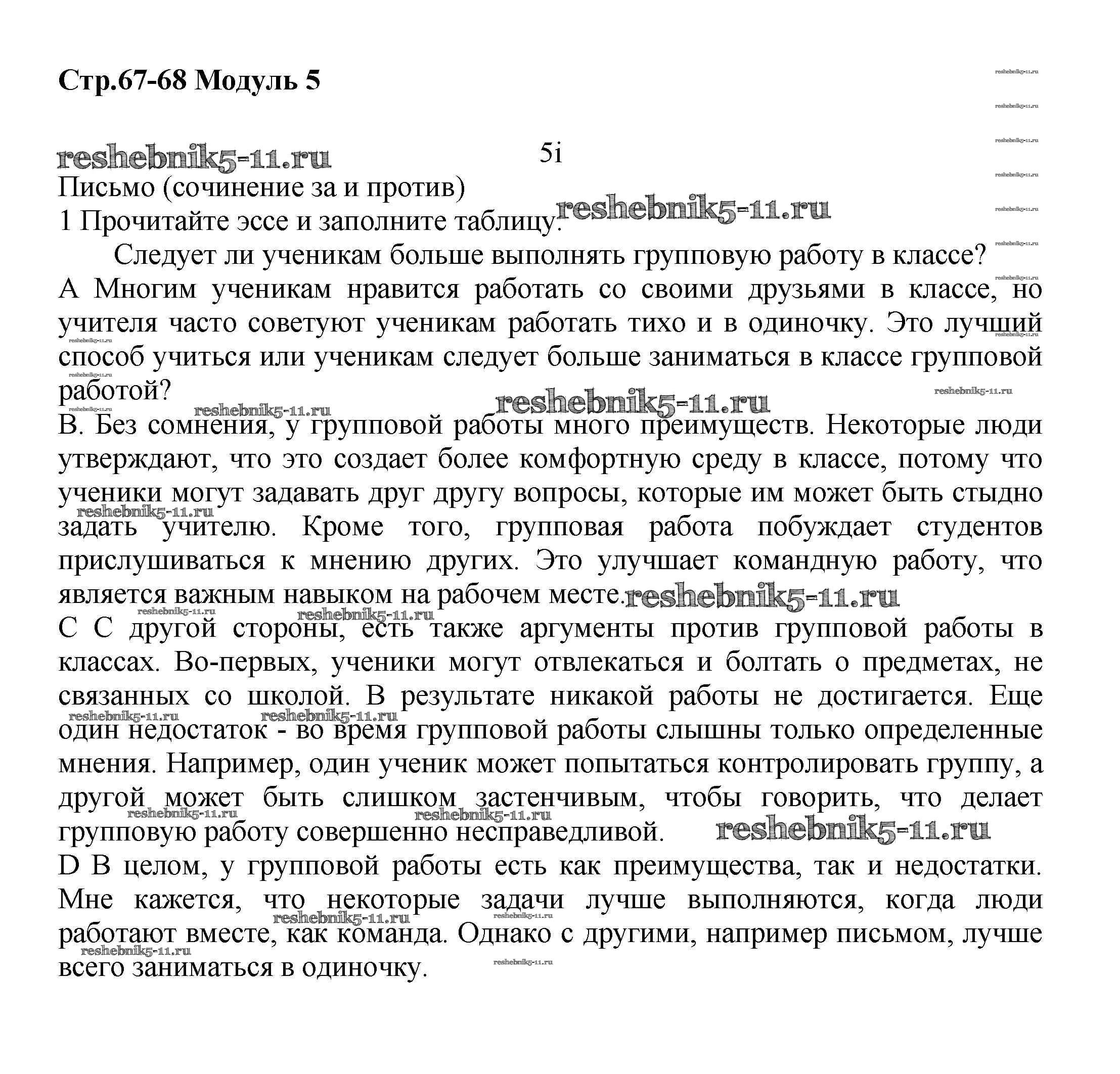 Готовая домашняя работа с ответами по Английскому языку за 8 класс Баранова, Дули, Эванс, Копылова, Мильруд Рабочая тетрадь Starlight Углубленный уровень Просвещение 2015 ФГОС - Module 5 стр.67-68
