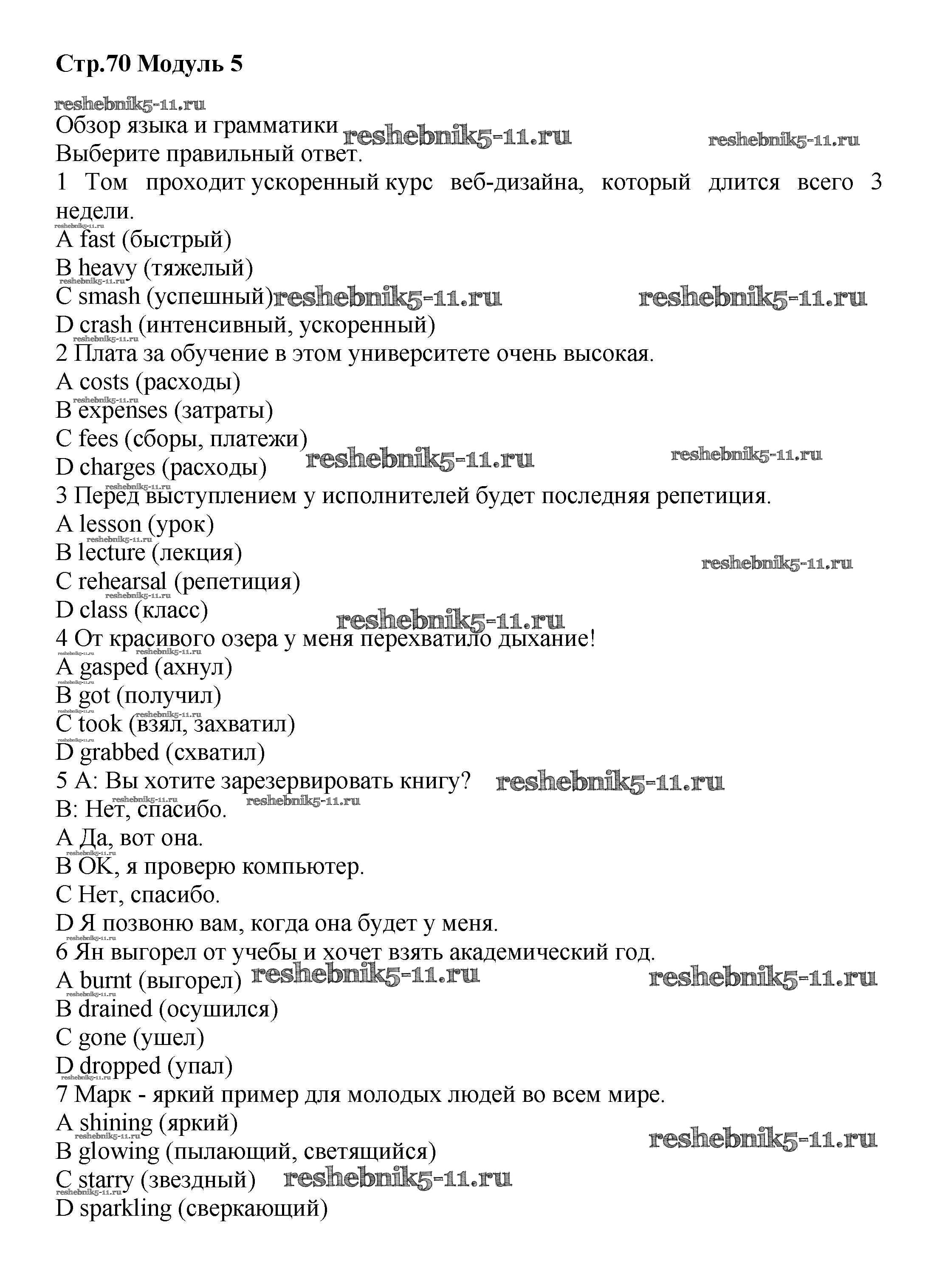 Готовая домашняя работа с ответами по Английскому языку за 8 класс Баранова, Дули, Эванс, Копылова, Мильруд Рабочая тетрадь Starlight Углубленный уровень Просвещение 2015 ФГОС - Module 5 стр.70