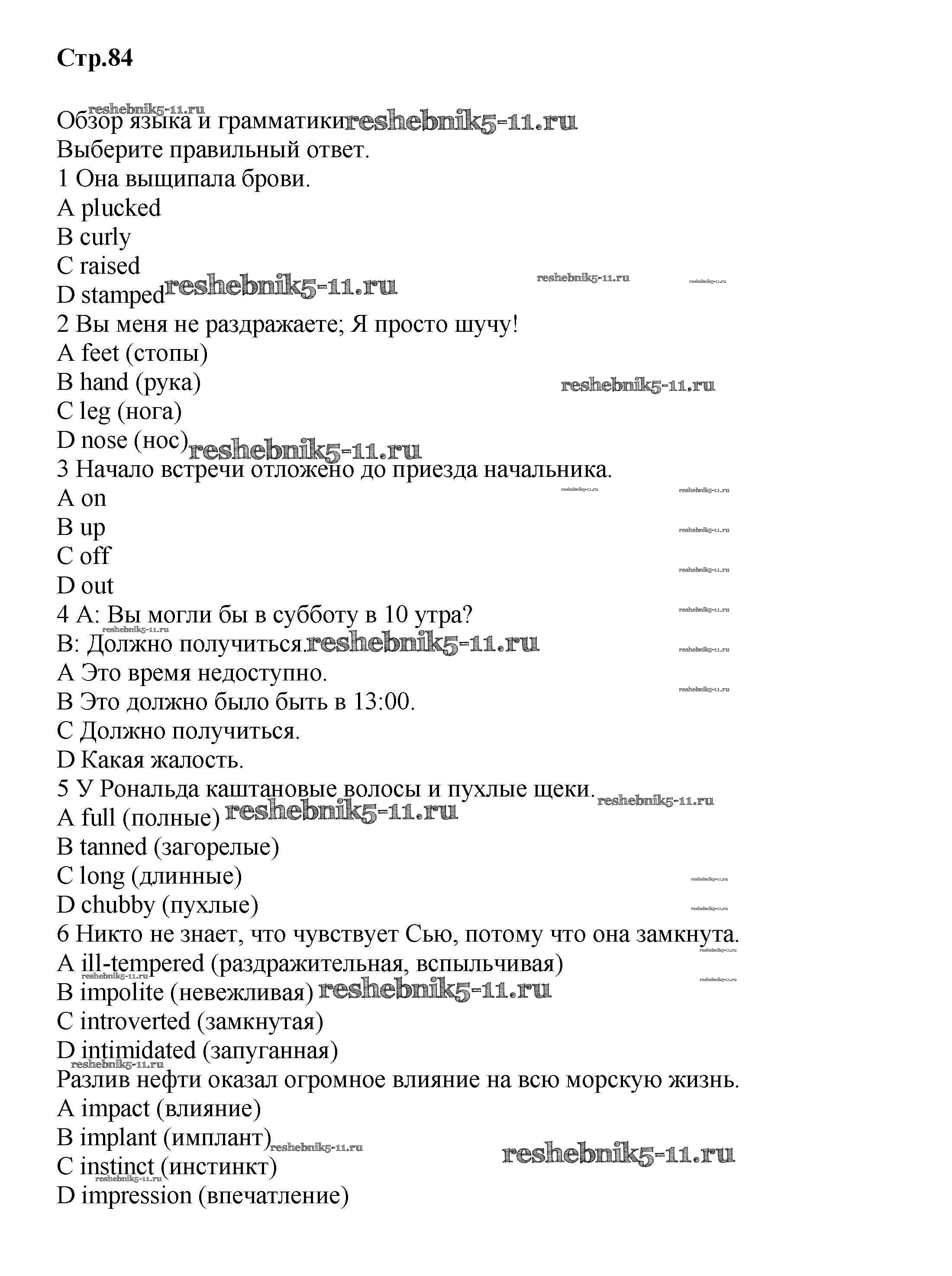 Готовая домашняя работа с ответами по Английскому языку за 8 класс Баранова, Дули, Эванс, Копылова, Мильруд Рабочая тетрадь Starlight Углубленный уровень Просвещение 2015 ФГОС - Module 6 стр.84