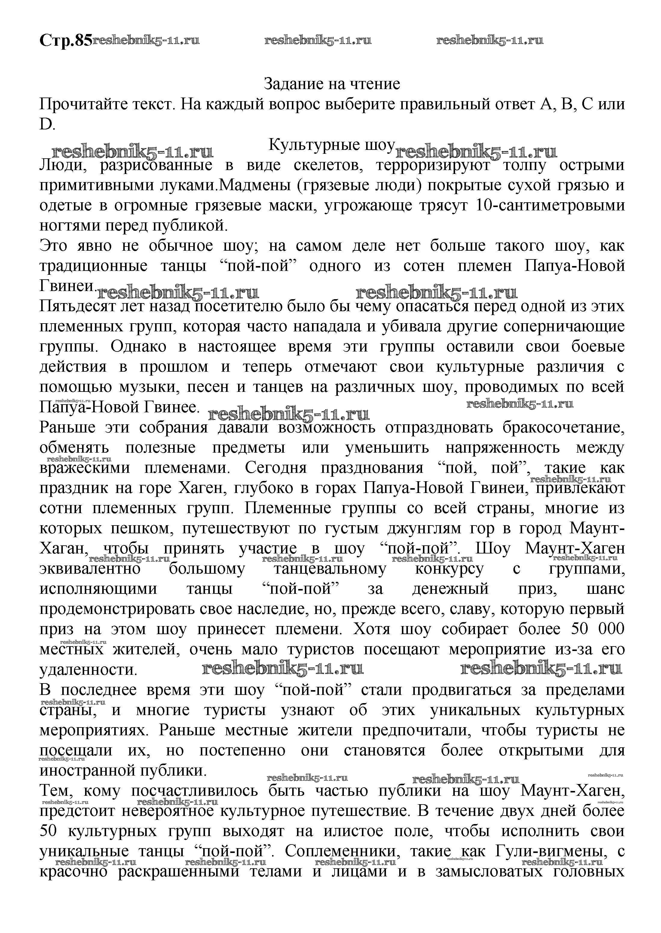 Готовая домашняя работа с ответами по Английскому языку за 8 класс Баранова, Дули, Эванс, Копылова, Мильруд Рабочая тетрадь Starlight Углубленный уровень Просвещение 2015 ФГОС - Module 6 стр.85