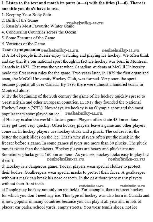 Готовая домашняя работа с ответами по Английскому языку за 8 класс Афанасьева, Михеева, Баранова Рабочая тетрадь Rainbow Дрофа 2016 ФГОС - Unit 1. Sport and outdoor activities 1