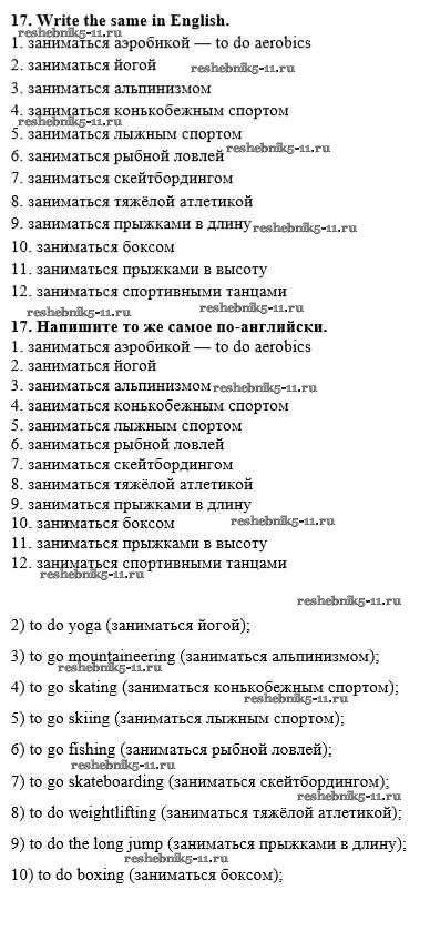 Готовая домашняя работа с ответами по Английскому языку за 8 класс Афанасьева, Михеева, Баранова Рабочая тетрадь Rainbow Дрофа 2016 ФГОС - Unit 1. Sport and outdoor activities 17