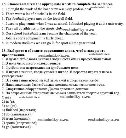 Готовая домашняя работа с ответами по Английскому языку за 8 класс Афанасьева, Михеева, Баранова Рабочая тетрадь Rainbow Дрофа 2016 ФГОС - Unit 1. Sport and outdoor activities 18