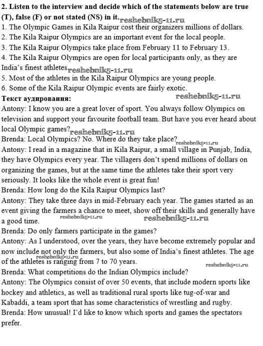Готовая домашняя работа с ответами по Английскому языку за 8 класс Афанасьева, Михеева, Баранова Рабочая тетрадь Rainbow Дрофа 2016 ФГОС - Unit 1. Sport and outdoor activities 2