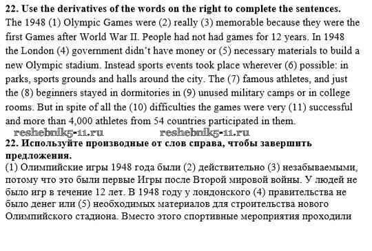 Готовая домашняя работа с ответами по Английскому языку за 8 класс Афанасьева, Михеева, Баранова Рабочая тетрадь Rainbow Дрофа 2016 ФГОС - Unit 1. Sport and outdoor activities 22