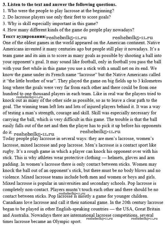 Готовая домашняя работа с ответами по Английскому языку за 8 класс Афанасьева, Михеева, Баранова Рабочая тетрадь Rainbow Дрофа 2016 ФГОС - Unit 1. Sport and outdoor activities 3