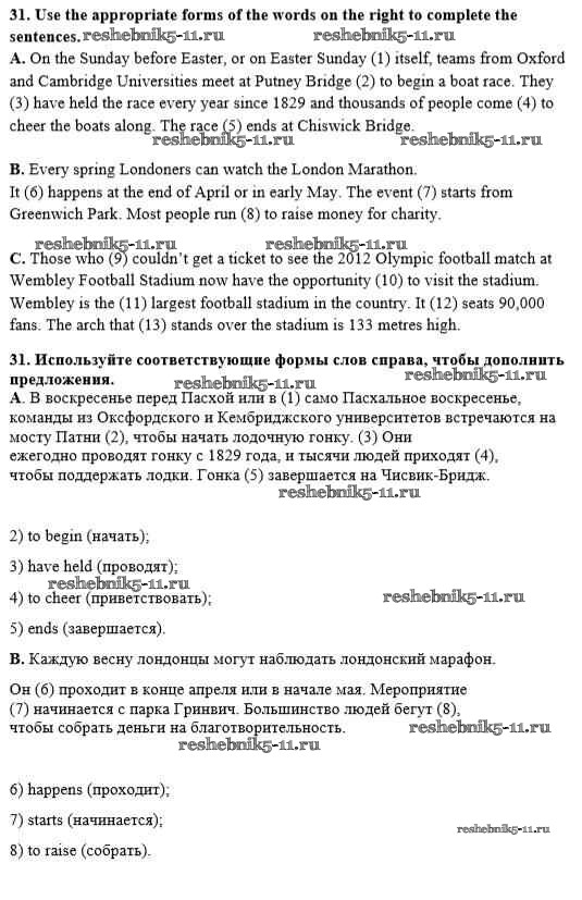 Готовая домашняя работа с ответами по Английскому языку за 8 класс Афанасьева, Михеева, Баранова Рабочая тетрадь Rainbow Дрофа 2016 ФГОС - Unit 1. Sport and outdoor activities 31