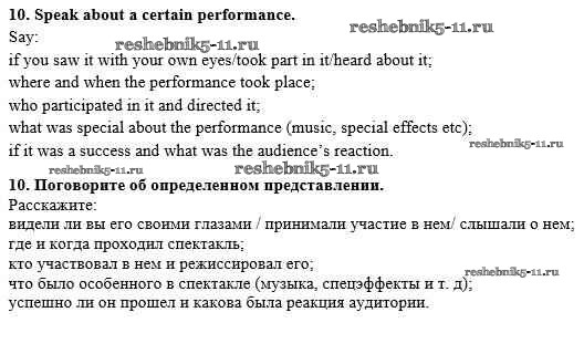 Готовая домашняя работа с ответами по Английскому языку за 8 класс Афанасьева, Михеева, Баранова Рабочая тетрадь Rainbow Дрофа 2016 ФГОС - Unit 2. Performing arts: theatre 10