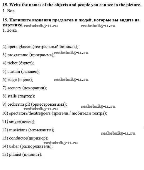 Готовая домашняя работа с ответами по Английскому языку за 8 класс Афанасьева, Михеева, Баранова Рабочая тетрадь Rainbow Дрофа 2016 ФГОС - Unit 2. Performing arts: theatre 15